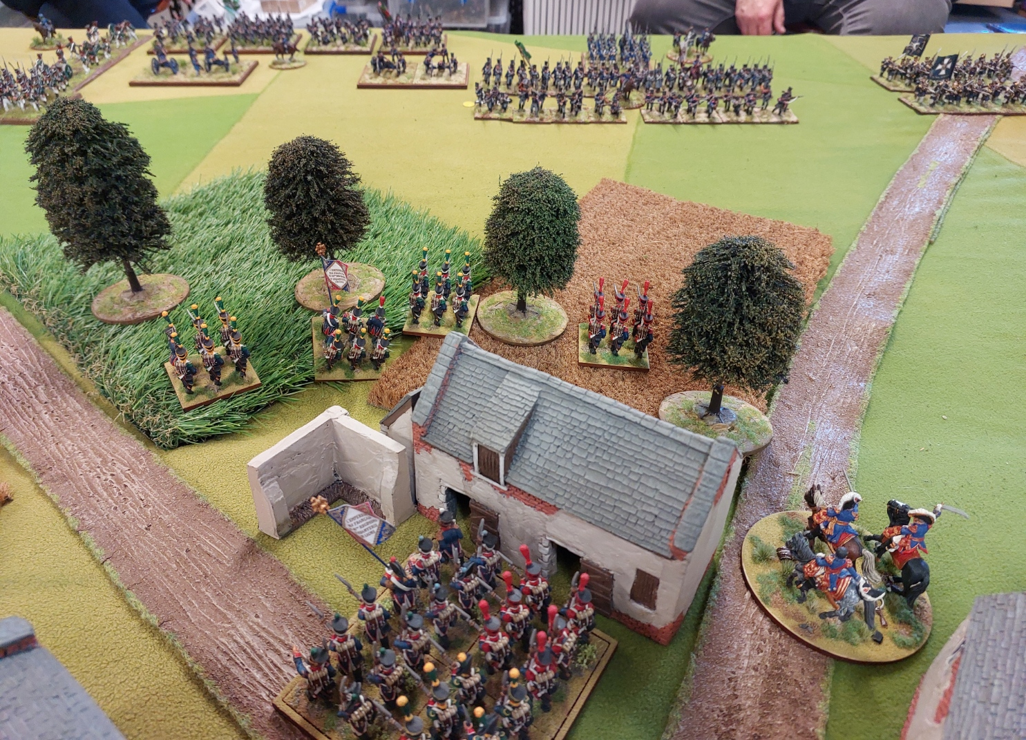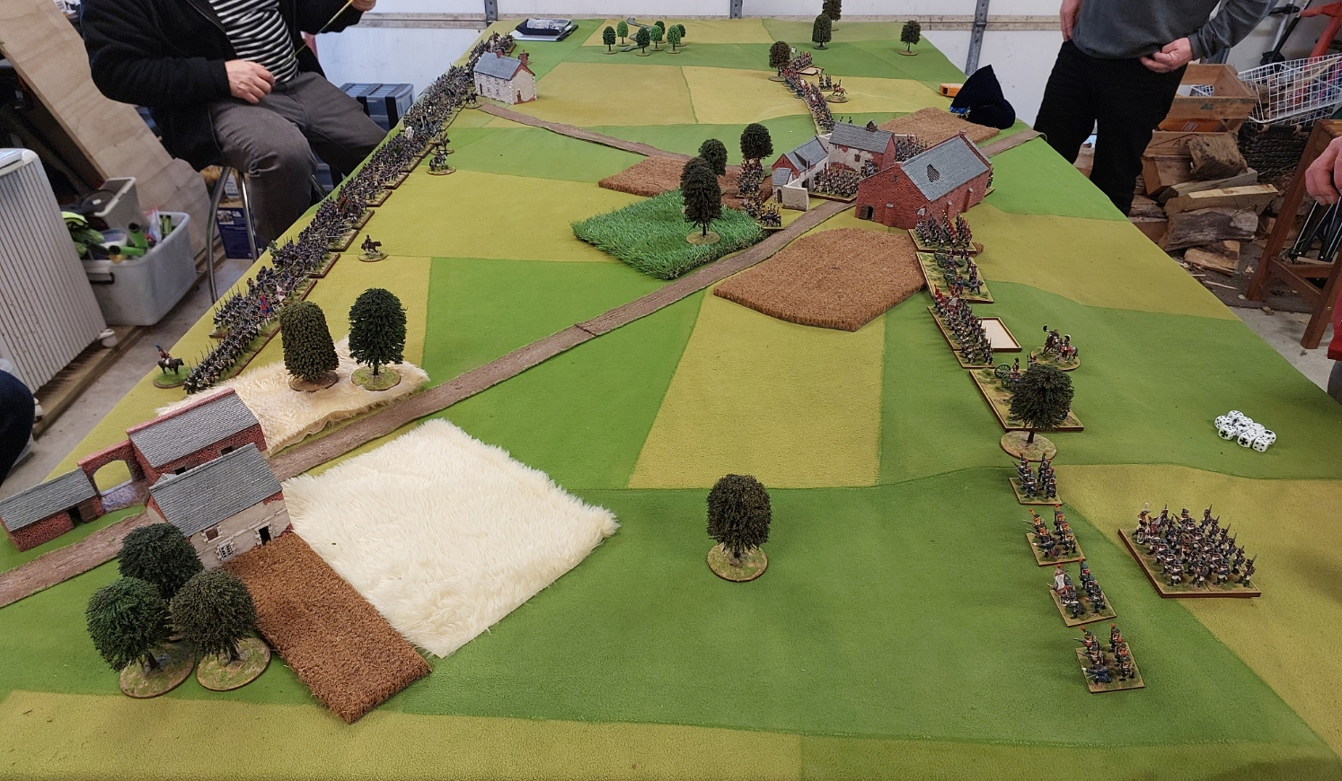 On French right Rob had a long line to defend while he awaited our cavalry reinforcements. Alan is pressing the line.