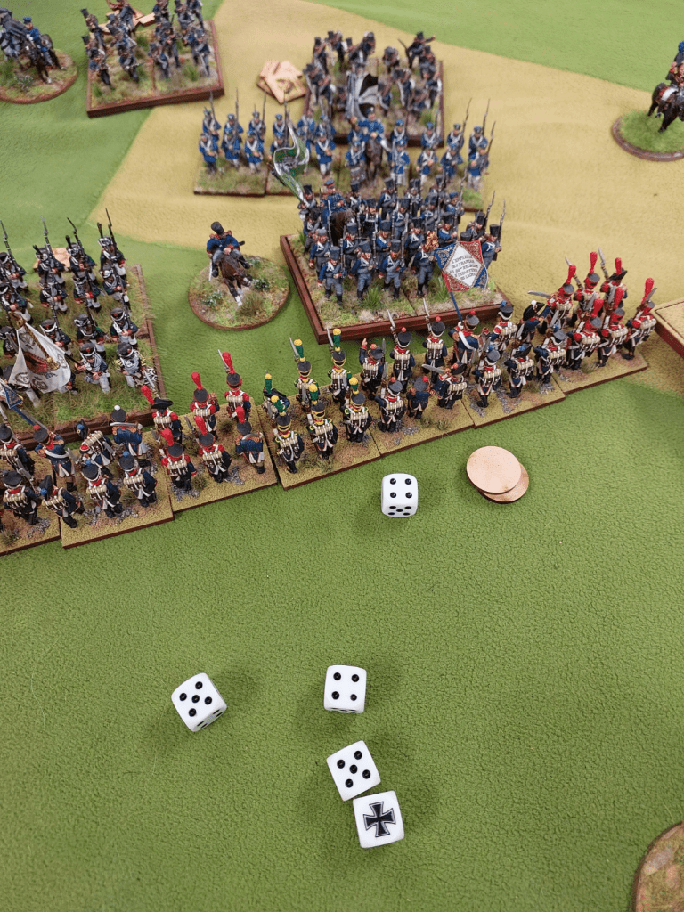 On French right Alan has sent his Prussians in again against Rob’s line…..Alan makes 5 hits…Rob saves all of them!