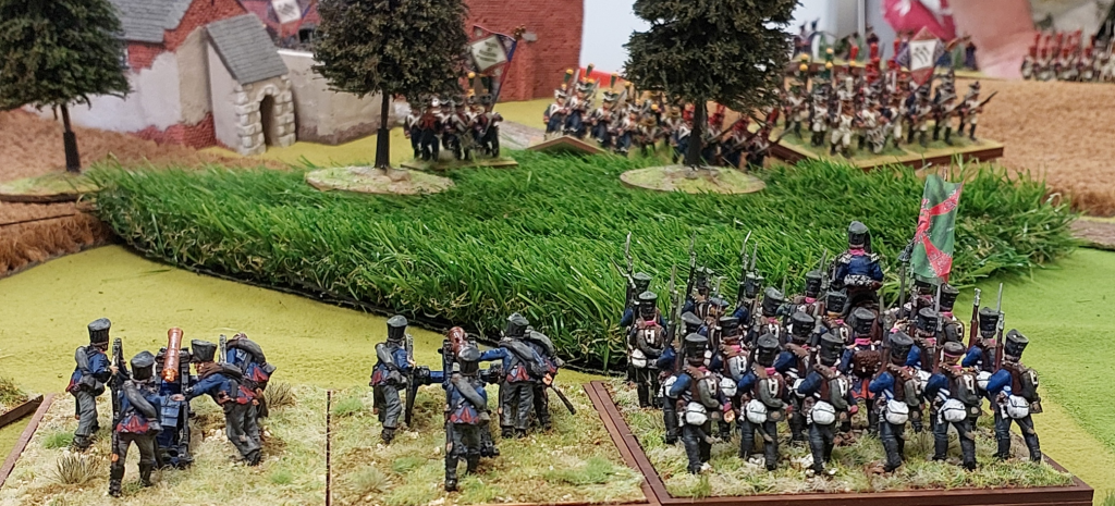 The Scenario has the village of Probstheida defended by Victors 2nd Corps, with some Young Guard artillery supporting. The Village has 3 modules and is on a ridgeline with the Objective of the game is for the allies to take all 3 modules to claim a victory. The Allies are Kleist’s 2nd Corps along with Wurttemberg’s 2nd Russian Corps. Various reinforcements are available to each side through the game. Should the Allies call on an optional reserve of the Divisions of Duka and Pisareff then the game is a Draw at best for the Allies.