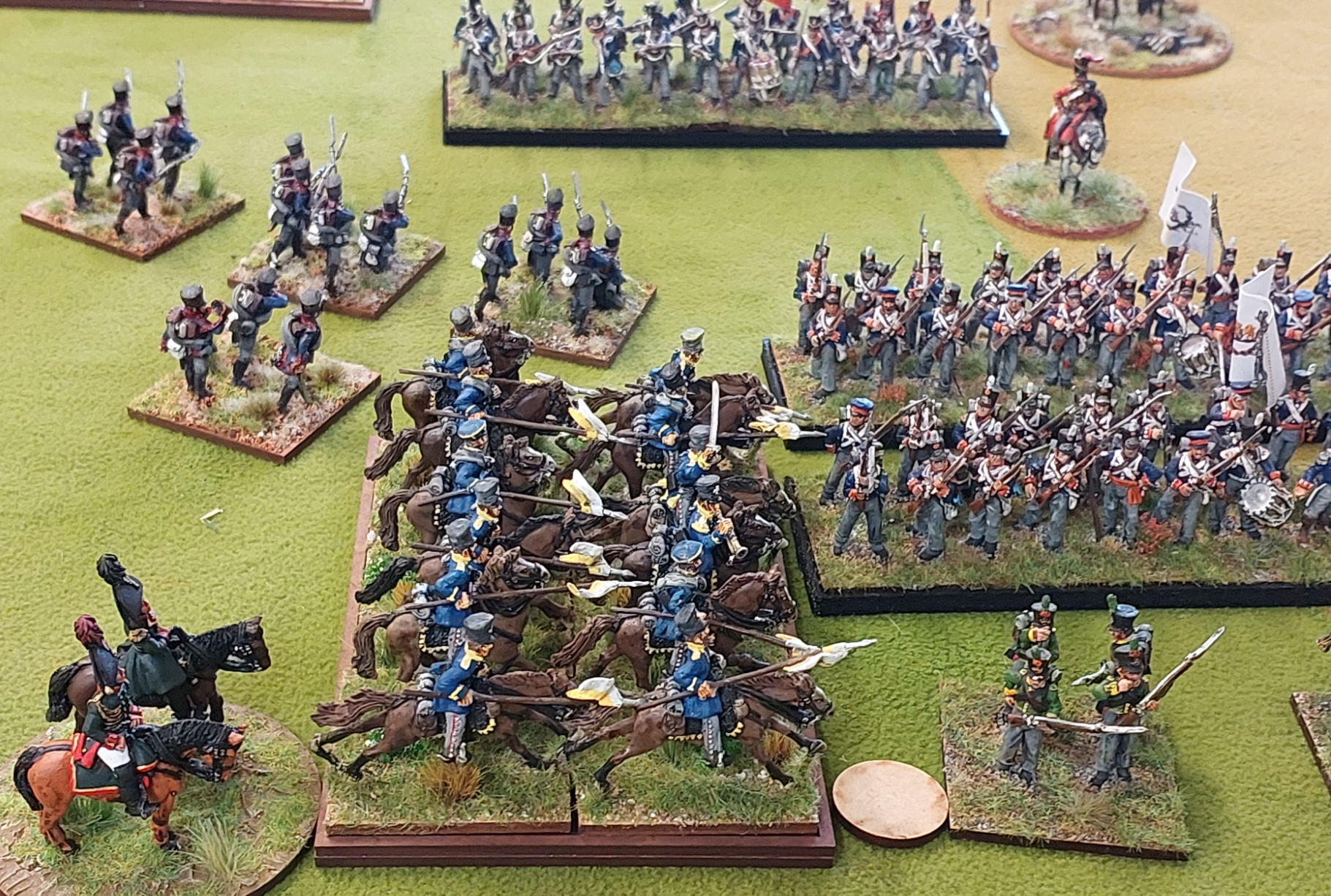 Dave is collecting Calpe Prussians so I invited Alan and Goldie along as they have Prussian Armies, Brian has Spanish so on the day Goldie(Calpe Prussian) and Dave(using Alans Perry Prussians) were Prussians, with Brian being Spanish and Alan used a Dutch/Belgian/Hanoverian force. I was on food, drink and rules!