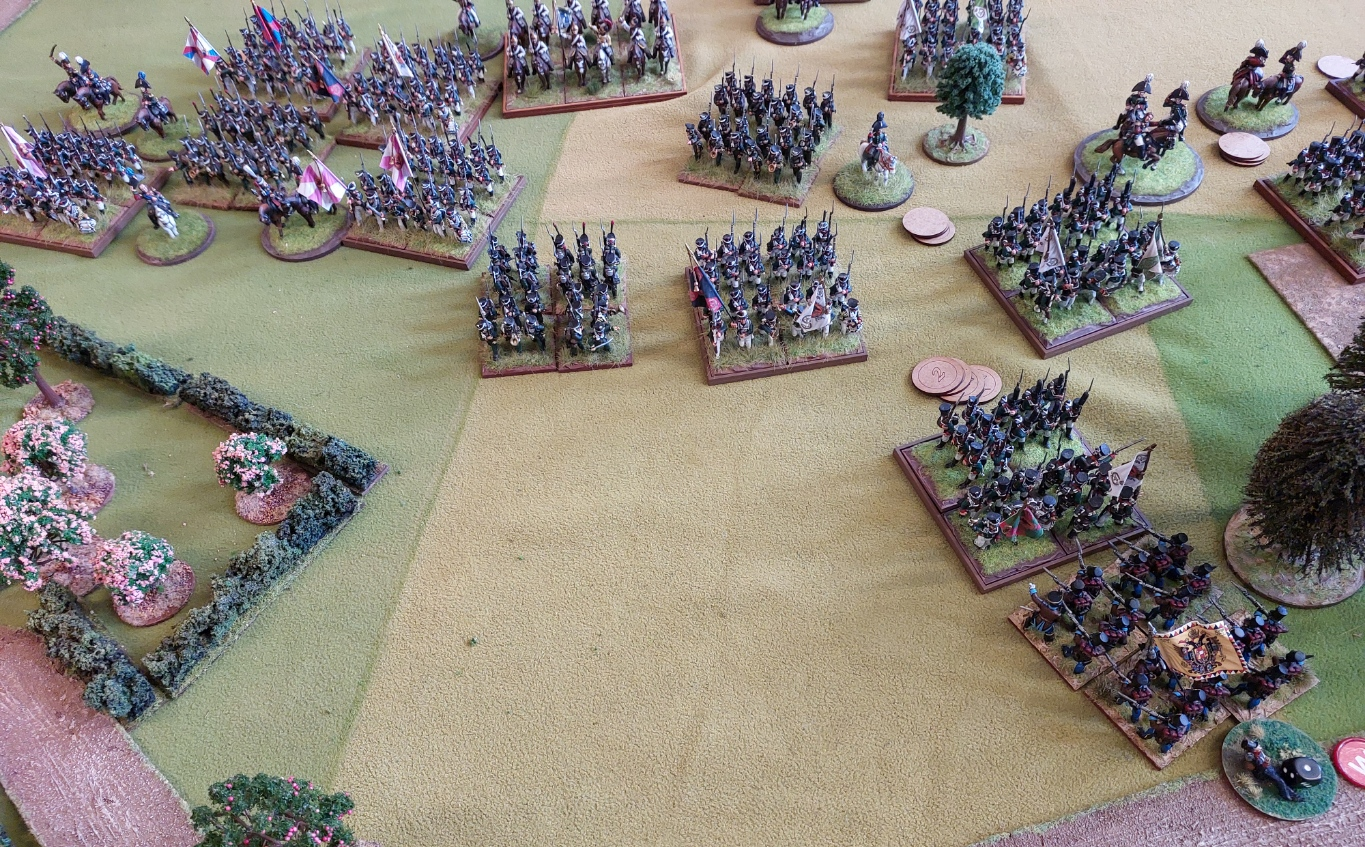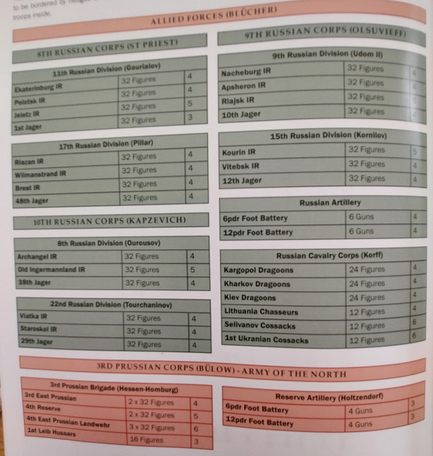 For this game there are 4 Allied players and 3 French/Saxon players. Map and orbats are below.