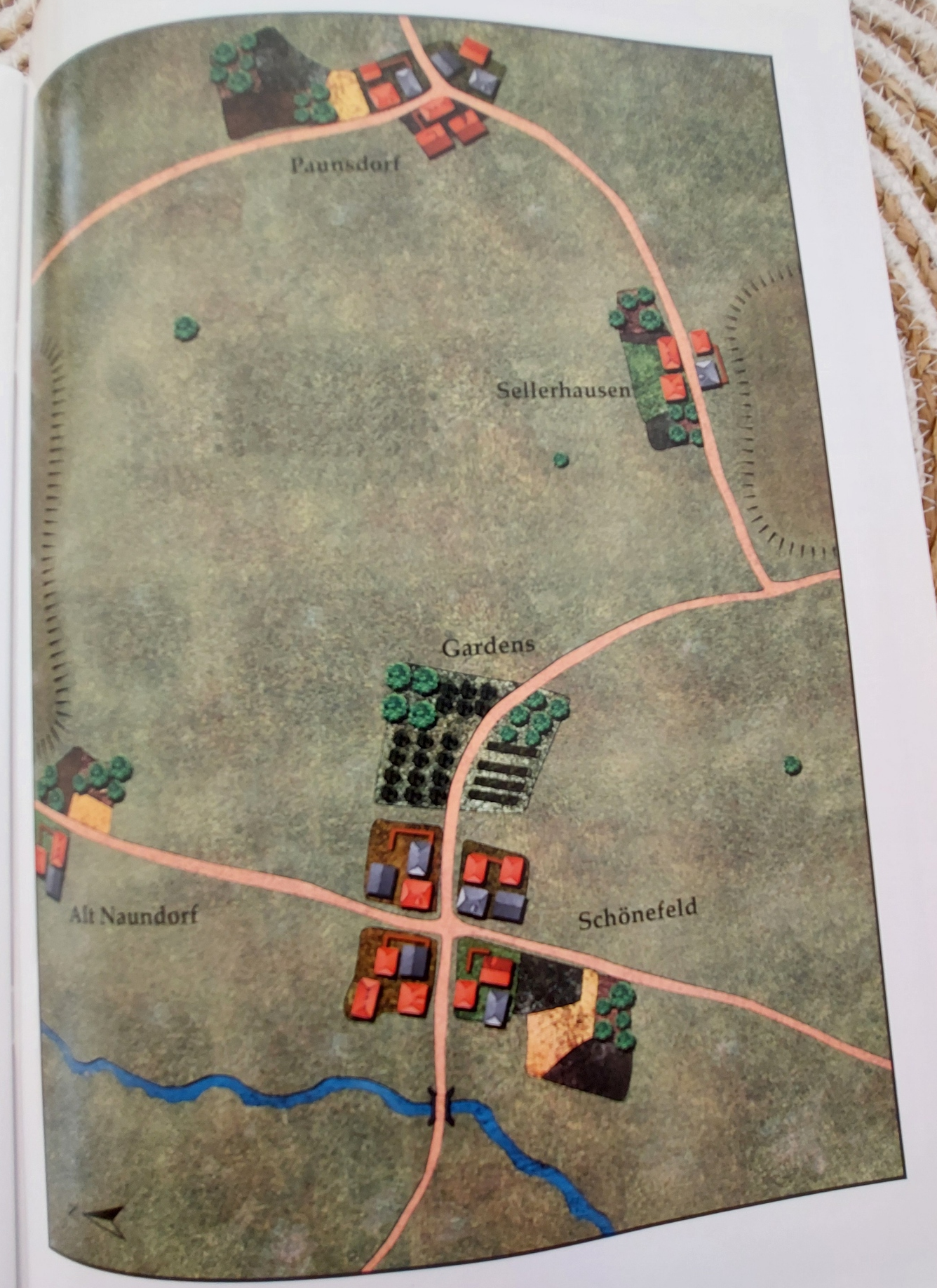 The villages of Alt Naundorf and Sellerhausen are single module built up areas. Paunsdorf has 3 and Schonefeld 4 modules. The gardens are impassable to cavalry and artillery but no effect on infantry. The stream was impassable except at the bridge.