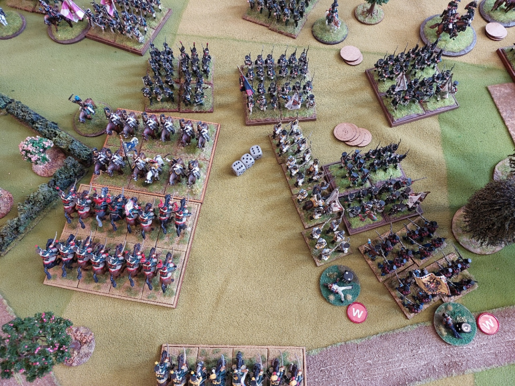 Meanwhile, the Russians manage to get an attack into the open Saxon flank, plus Dragoons into the French light cavalry.