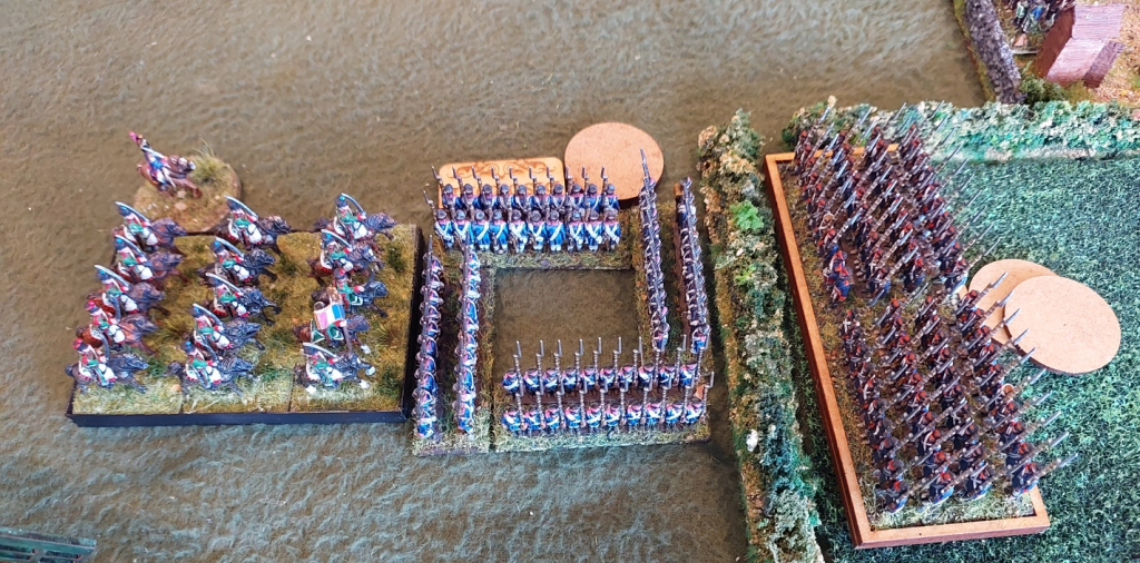To slow the Prussian advance.. I sent light cavalry into a disordered square…no expectation of destroying it..but hoping to cause high casualties…and not pop when if it didn’t go my way…it didn’t go my way and I retired safety…but they were now pinned in square.