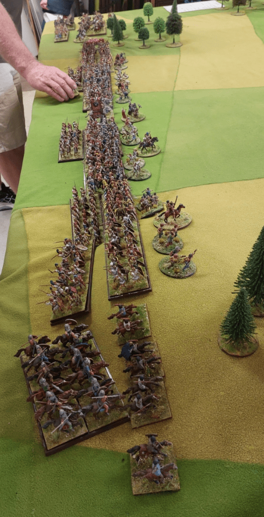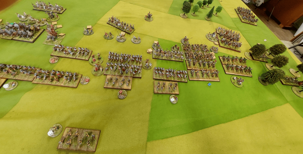 On the other half of the battle where I took some photos, none of which are good enough to share…Goldies legionnaire outfought Rob’s foot…however Rob’s cavalry were very slow to get moving but by games end were getting into combat and there were a lot of them! So give this a marginal Roman win.