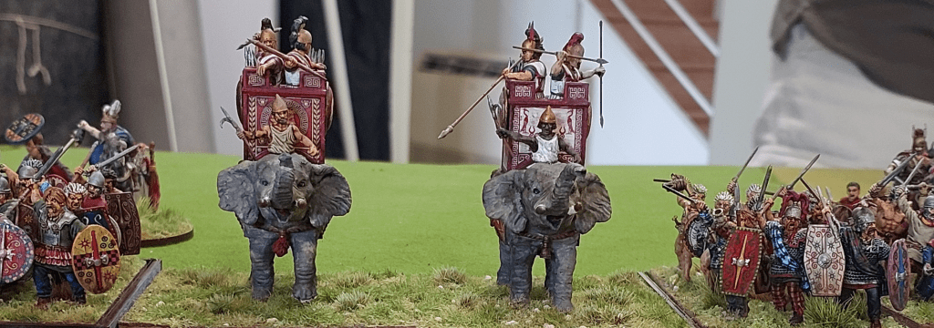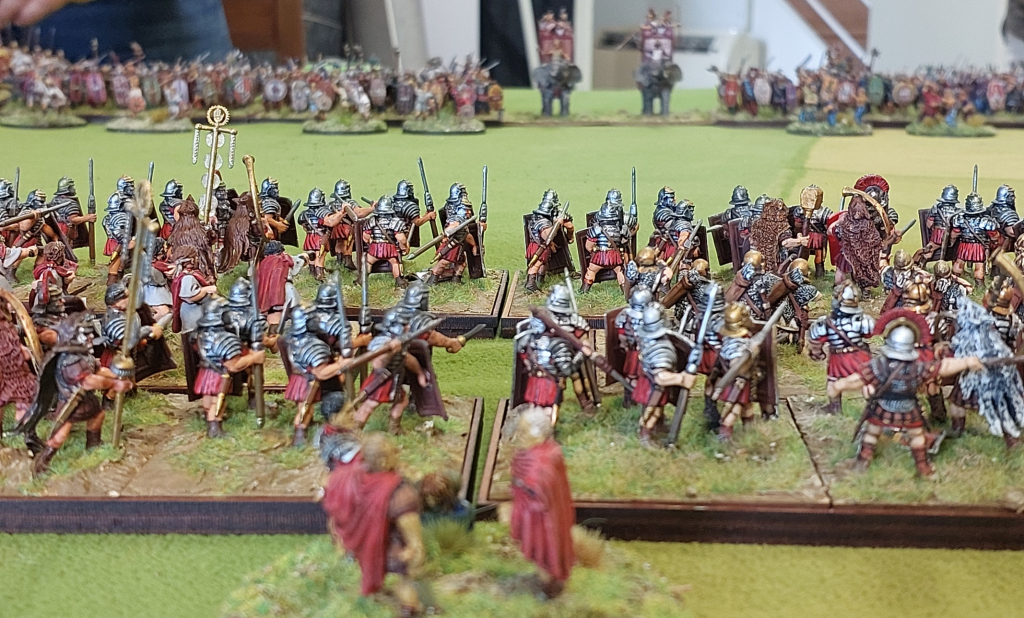 Couple of rounds in and one unit of legionnaires has popped……but the Warbands and Elephants are being worn down rapidly.