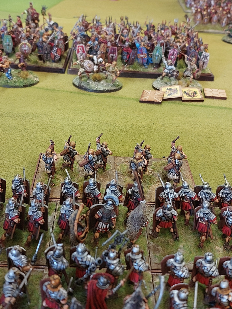 Waiting them my staunch legionnaires! We deployed the units 2 deep…..which we need to reconsider as the Auxilia Infantry can get easily beaten up!.
