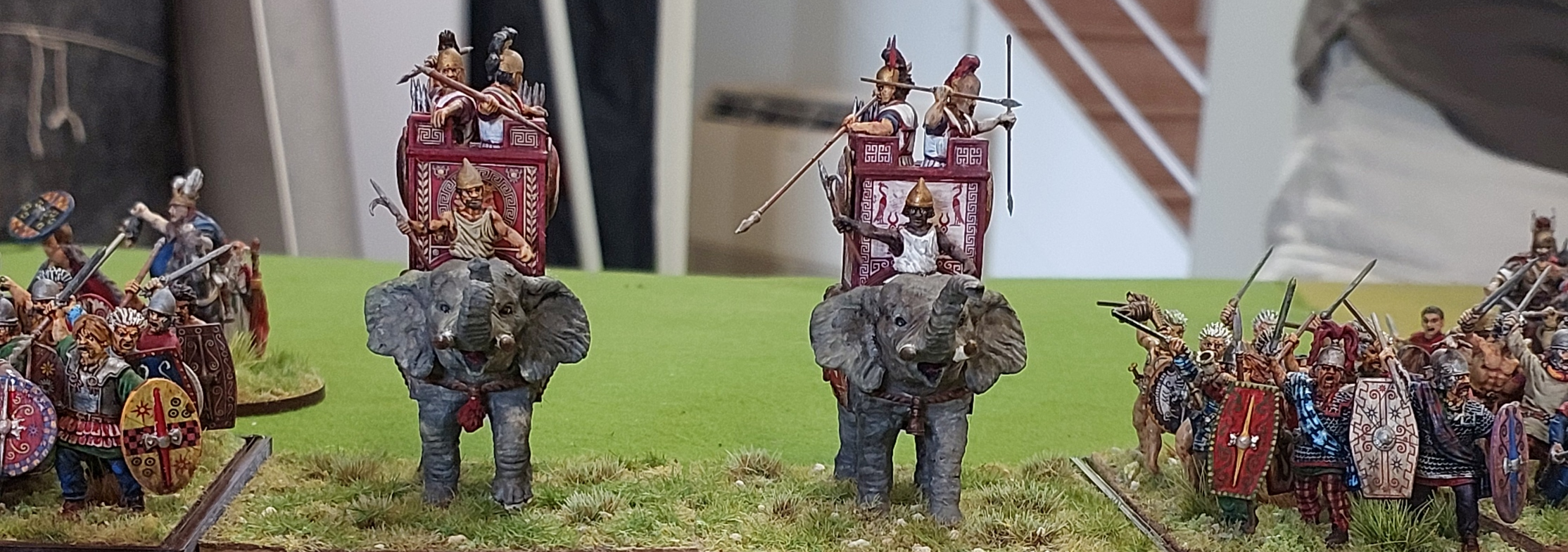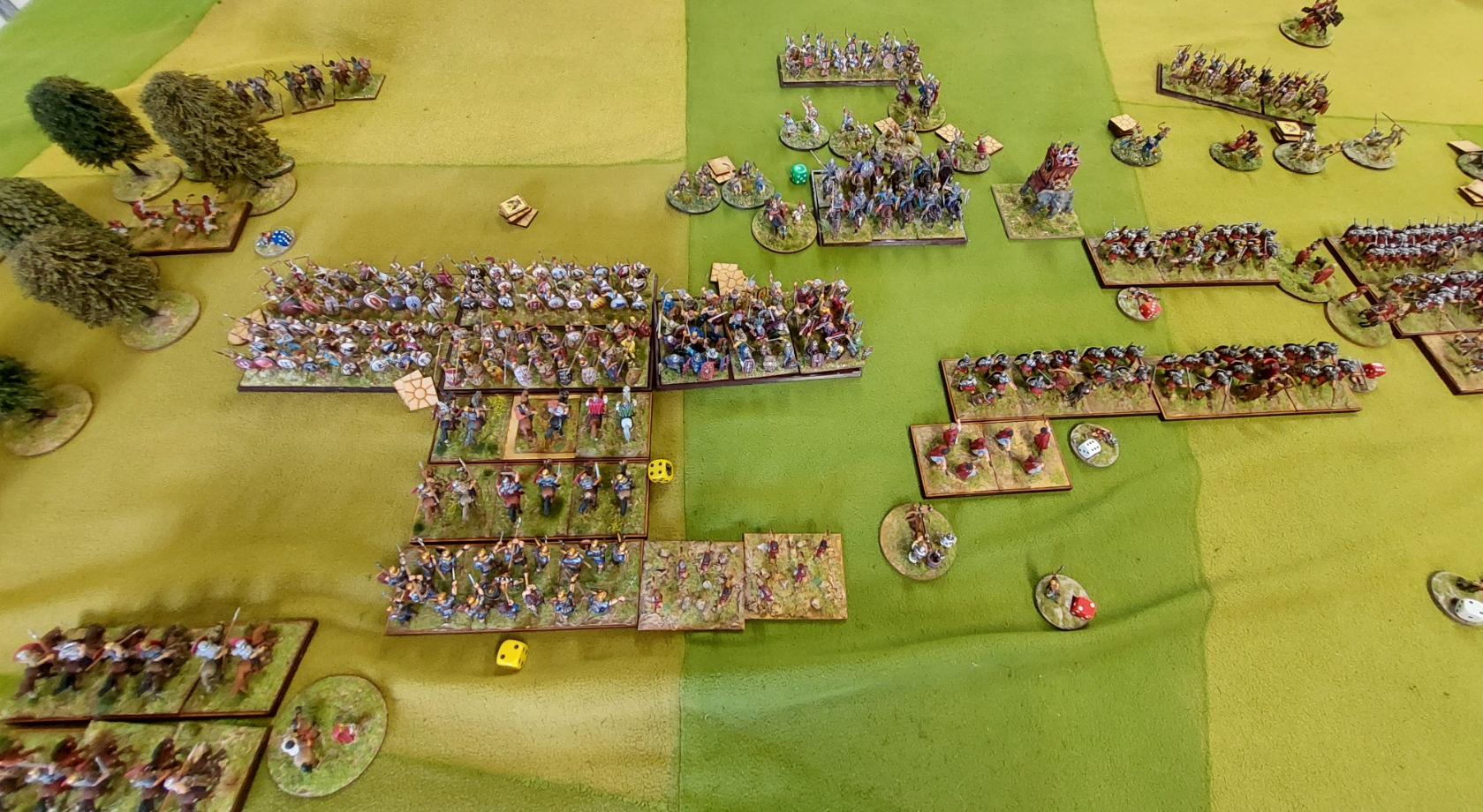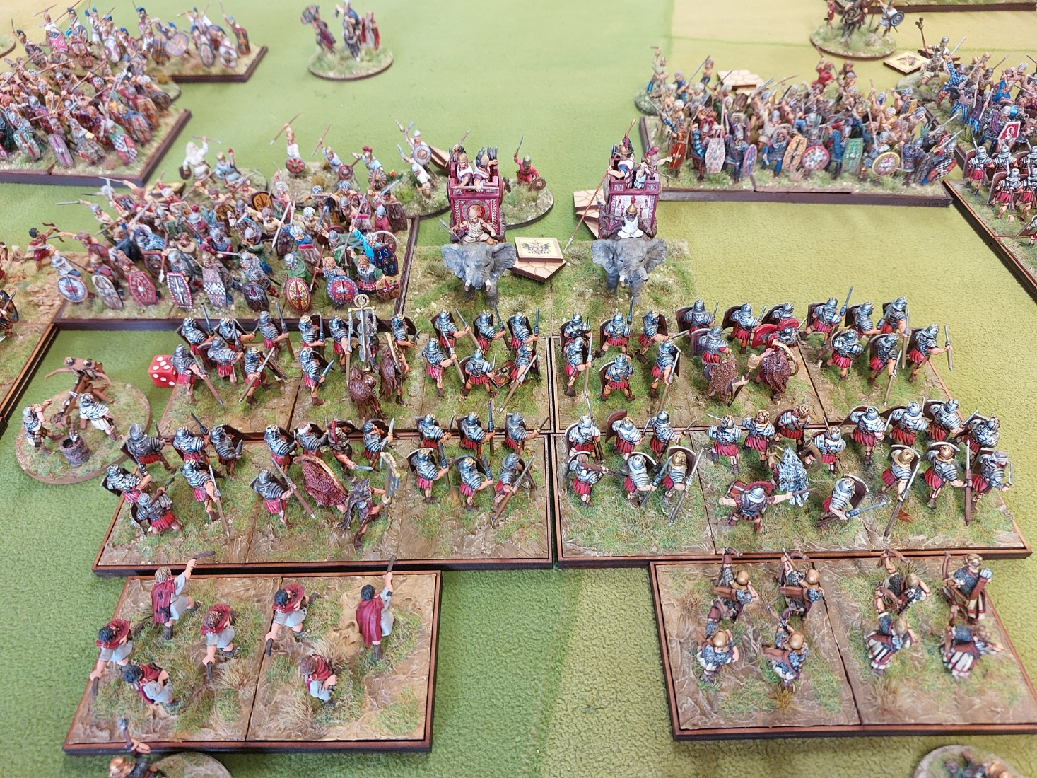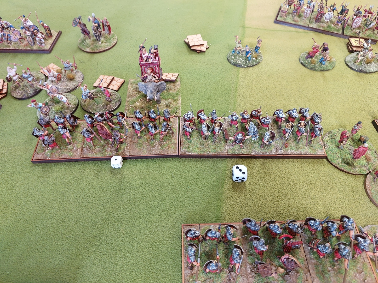 Couple of rounds in and one unit of legionnaires has popped……but the Warbands and Elephants are being worn down rapidly.