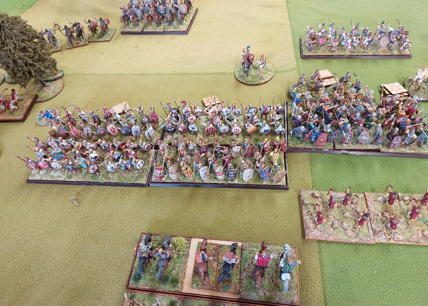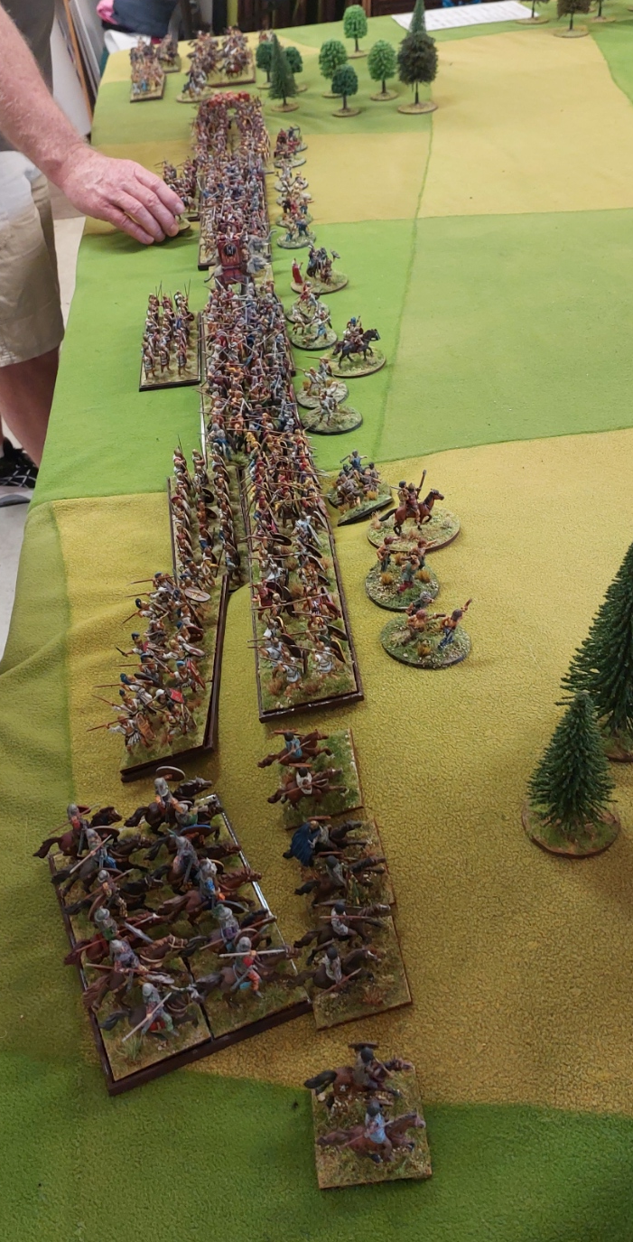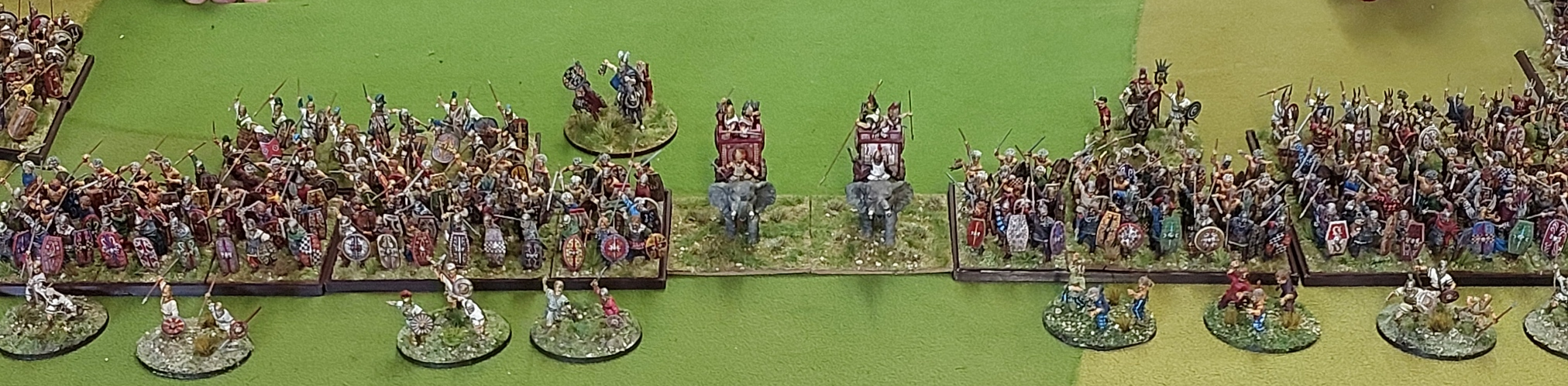 Centre of line with Elephants, Warbands and heavy infantry with skirmishers out front.