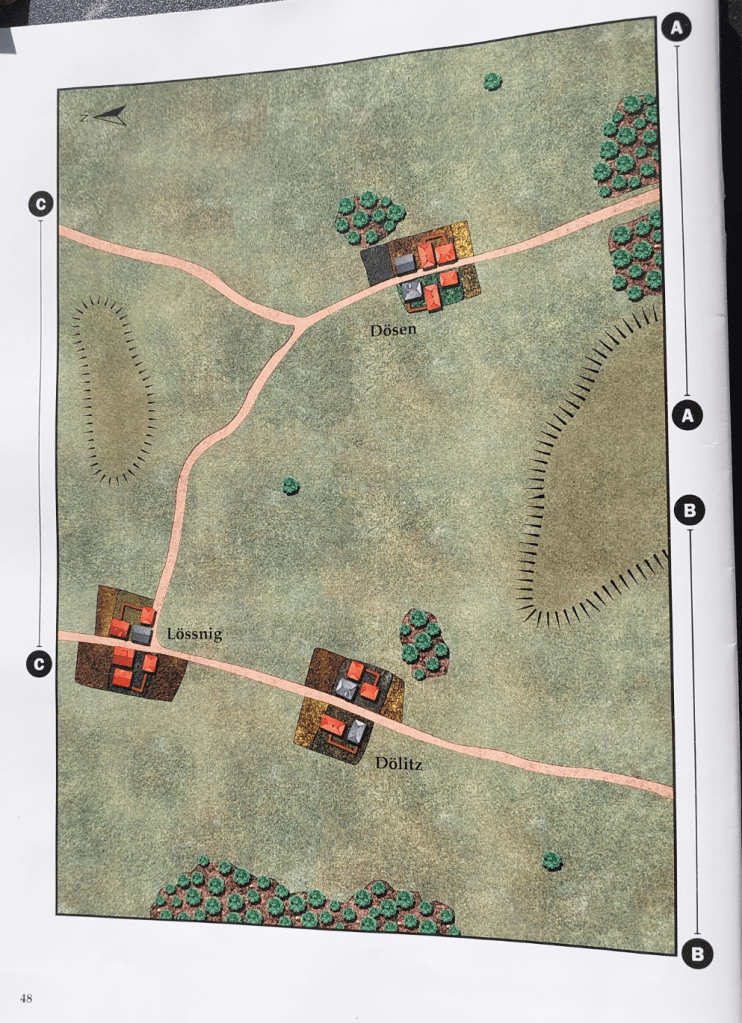 The scenario is the French are holding a line form Dosen to Dolitz. The Allies have 9 turns to take these 2 villages and Lossnig. The French have reinforcements arriving at different times, including 4th Cavalry Corp, 3rd Young Guard Division, 2nd Old Guard Division and the Berg lancers!