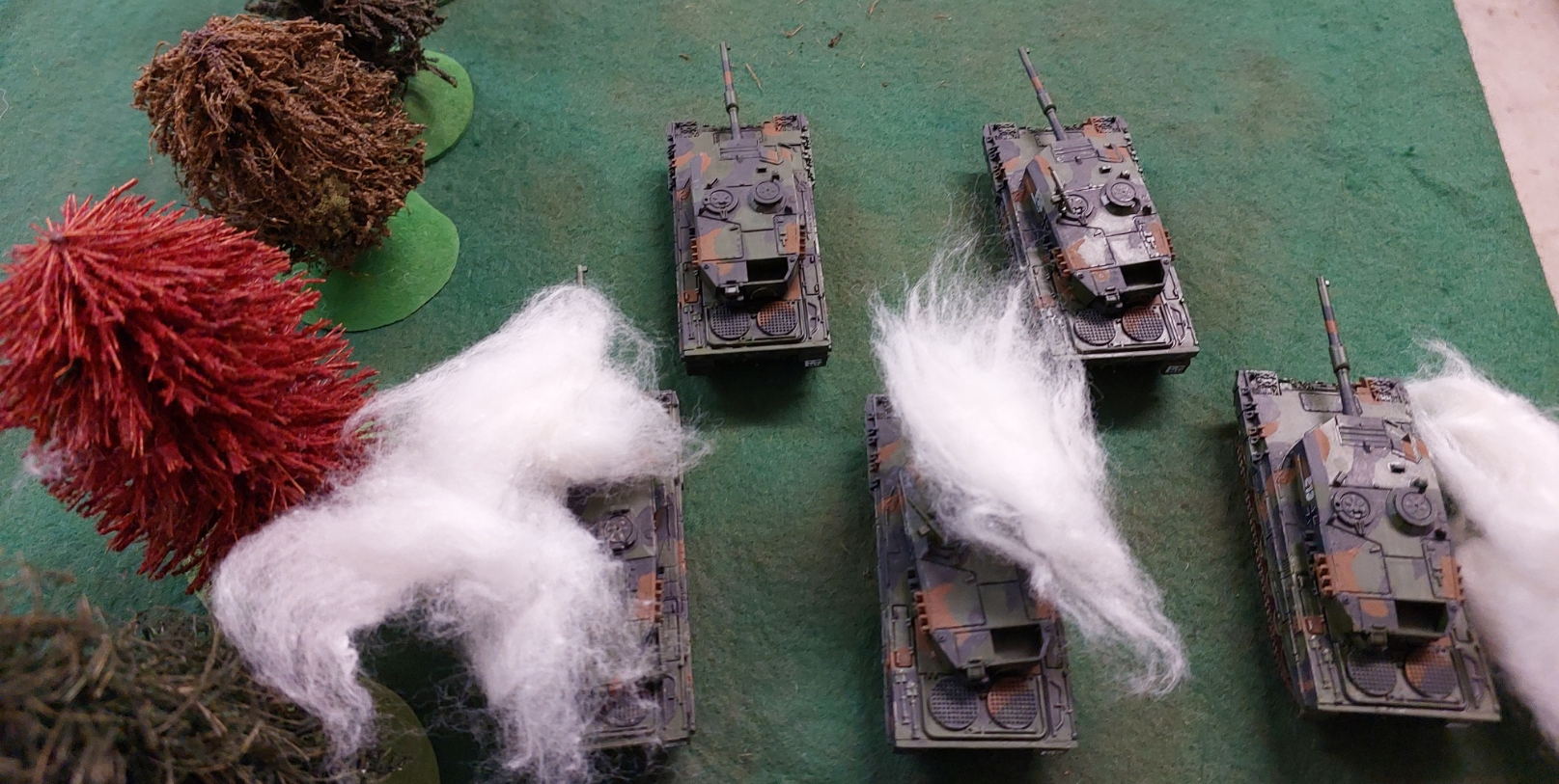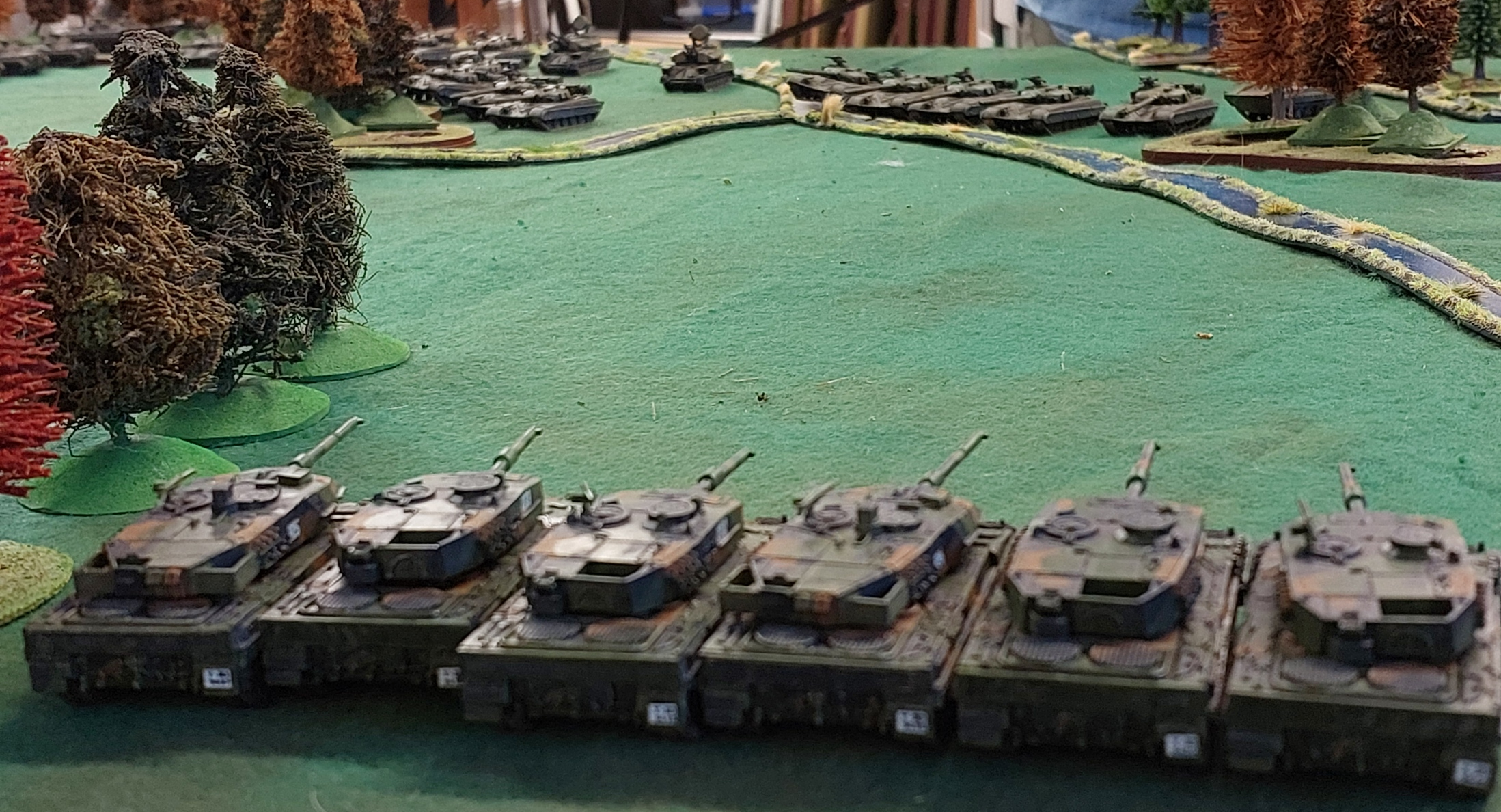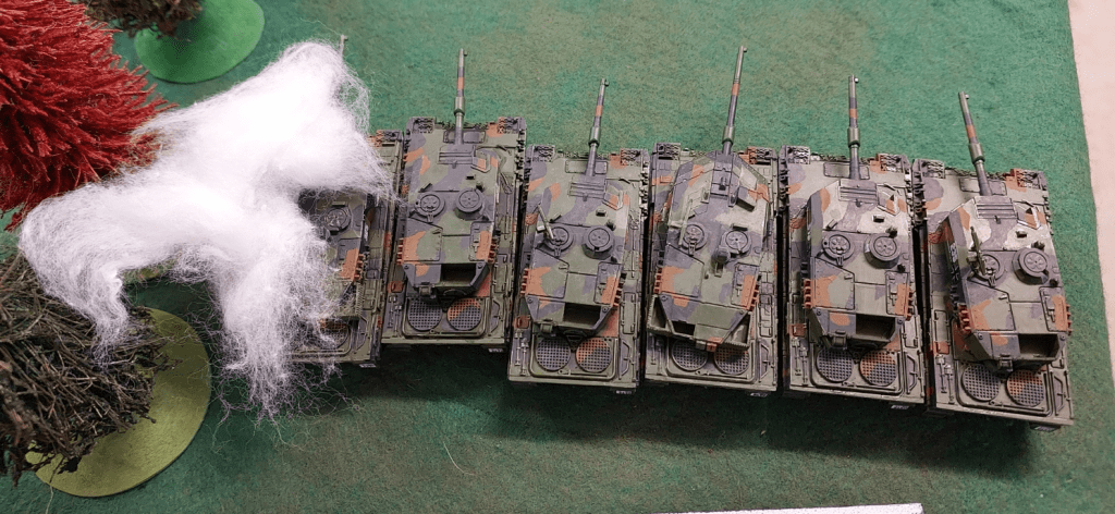 My 6 Leopard 2s are lined up and shoot the tank unit on the left…which contains the command tank. They managed to destroy them all .
