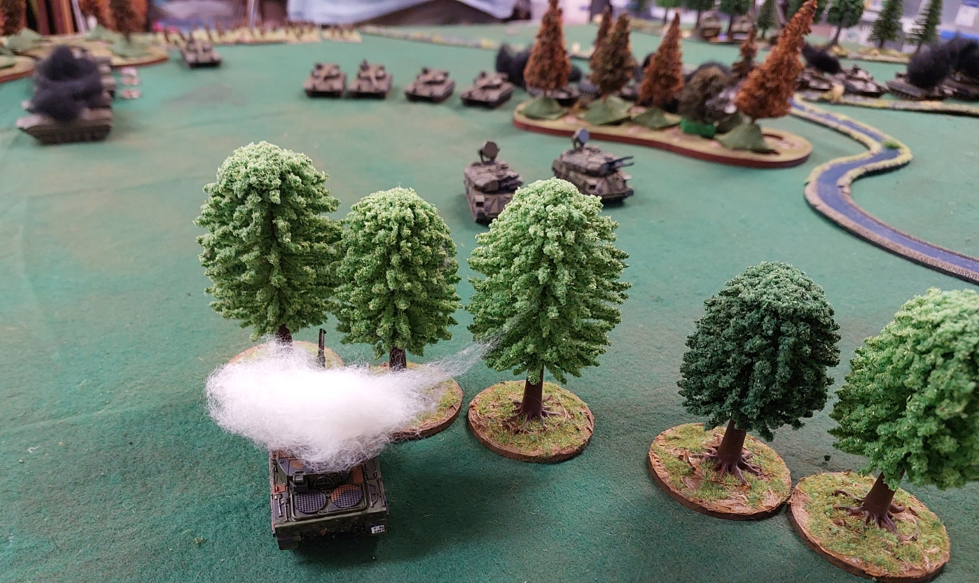 As expected… the lone Leopard is destroyed. The Shilka’s have raced forward….targeting the Pahs.