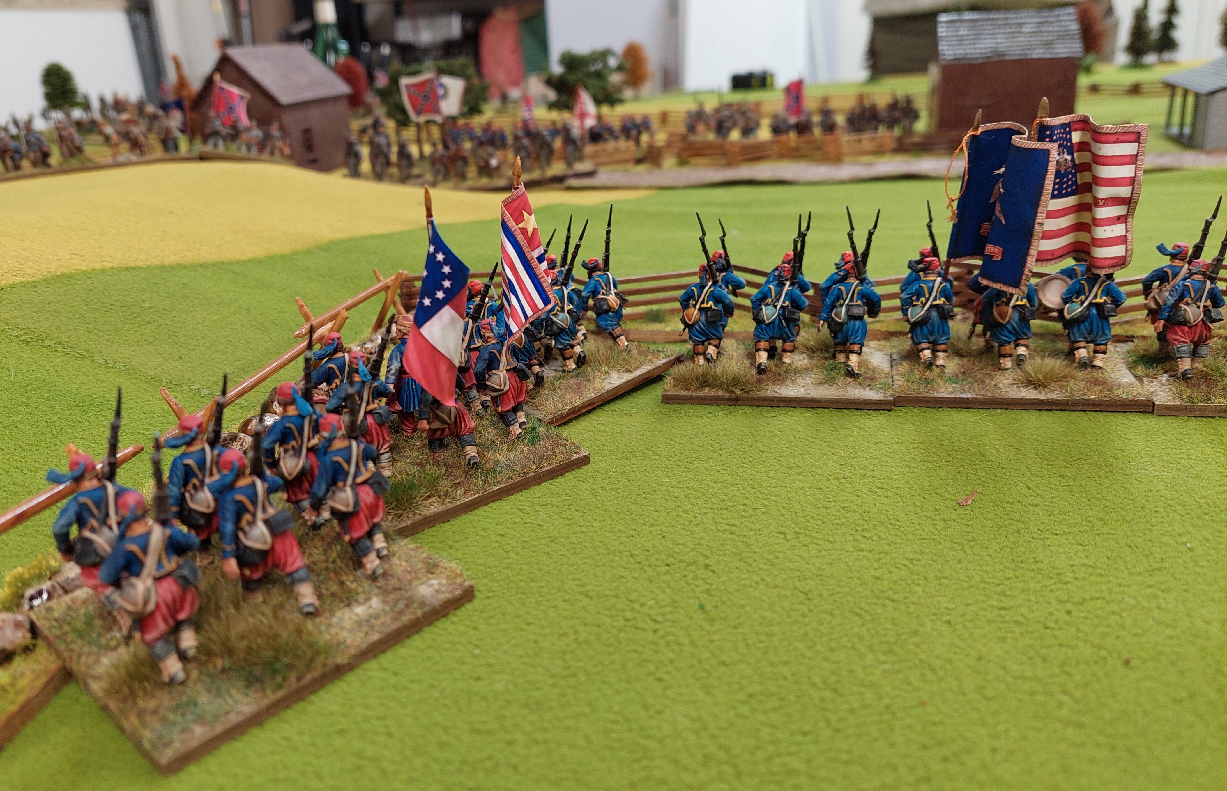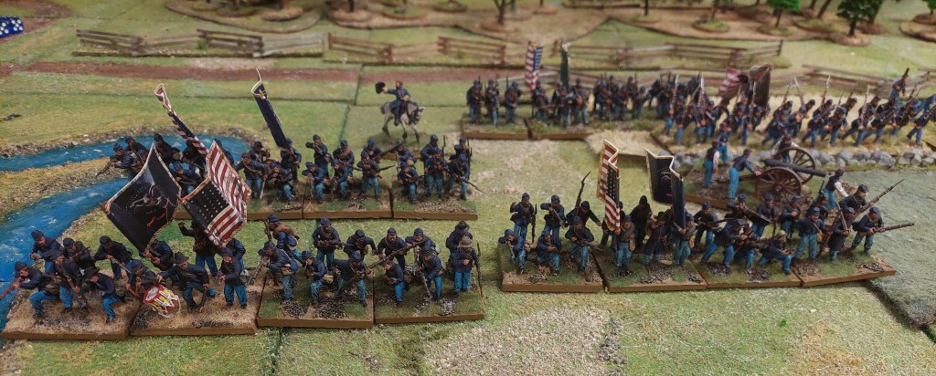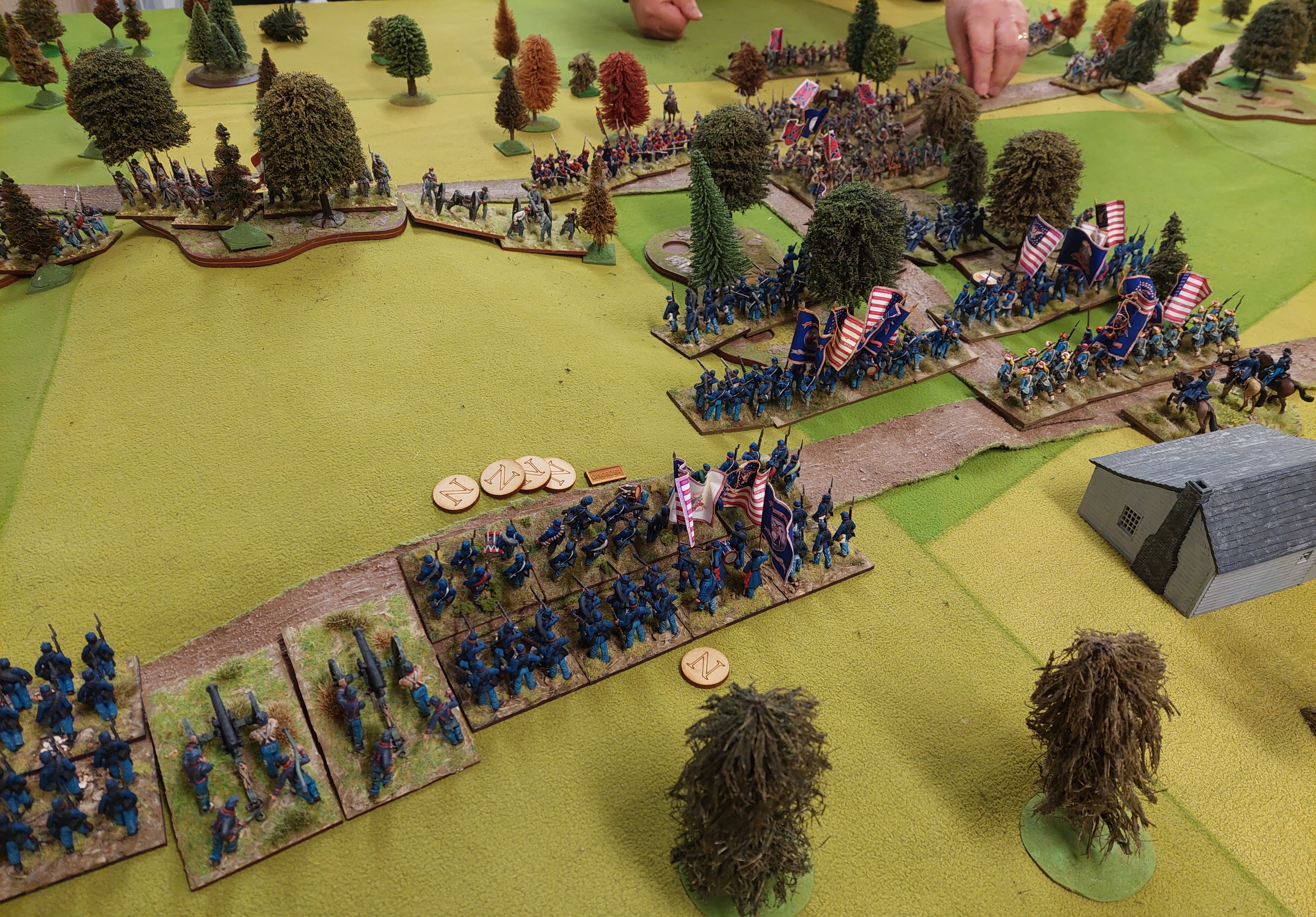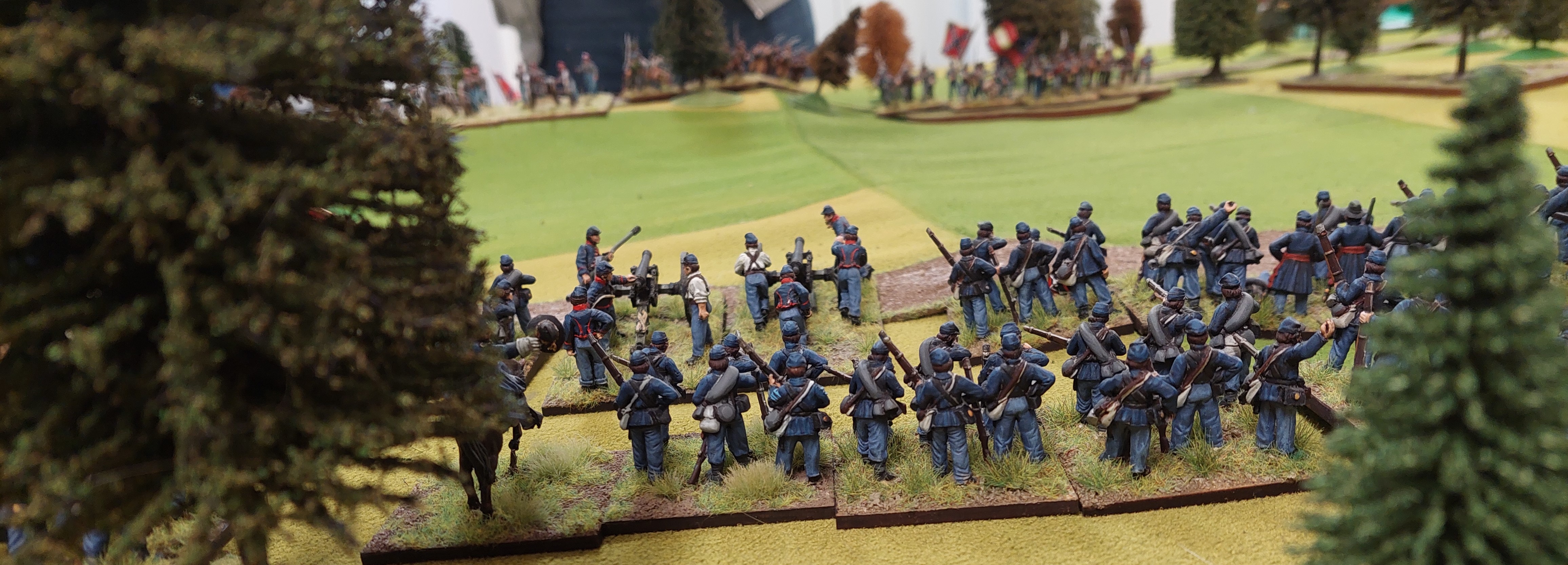 The 2 Union batteries to the left of the Union Regt have popped….and another Union Regt is now engaged.