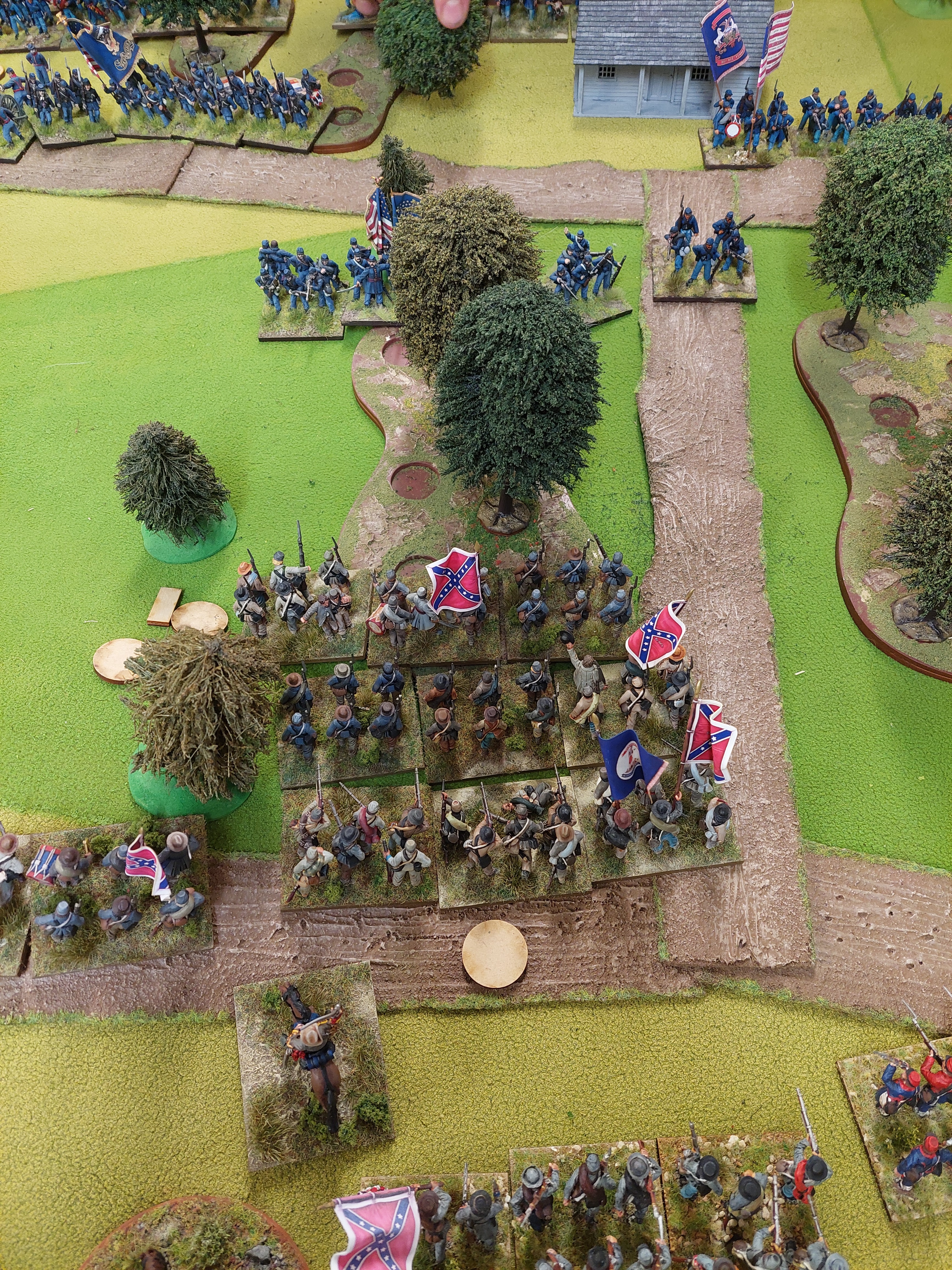 The elite Confederate Brigade of Pender advances onto the battlefield and the Union get Buchanan arriving on the hill in their right rear… one of the Rebel objectives…which just got much harder.