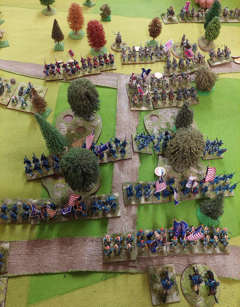 Now at the end the Union Army had the Confederates on the back pedal with a number of Rebel units being ‘Whipped’ and retiring as the Union troops approached. A clear victory would have been if the Union had taken the crossroads just to their front. Alas, I hadn’t reminded them of this……so they didn’t launch their attack in time….. perhaps next time!