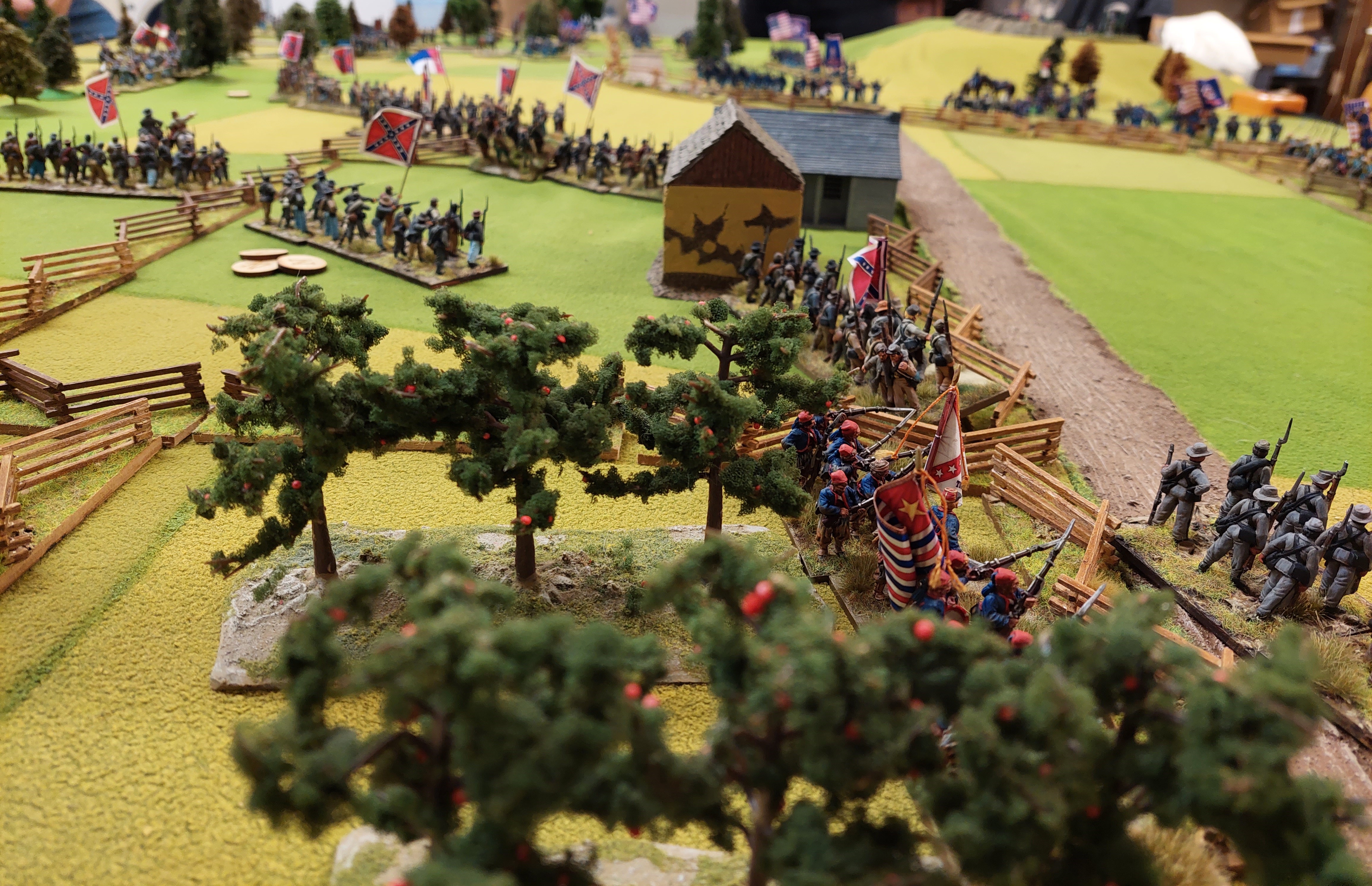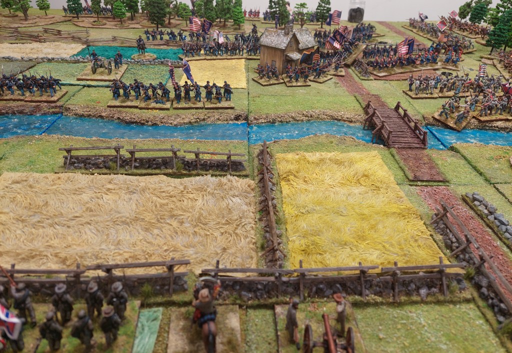 Union troops in the farmstead…..fields and 2 brigades have marched on!
