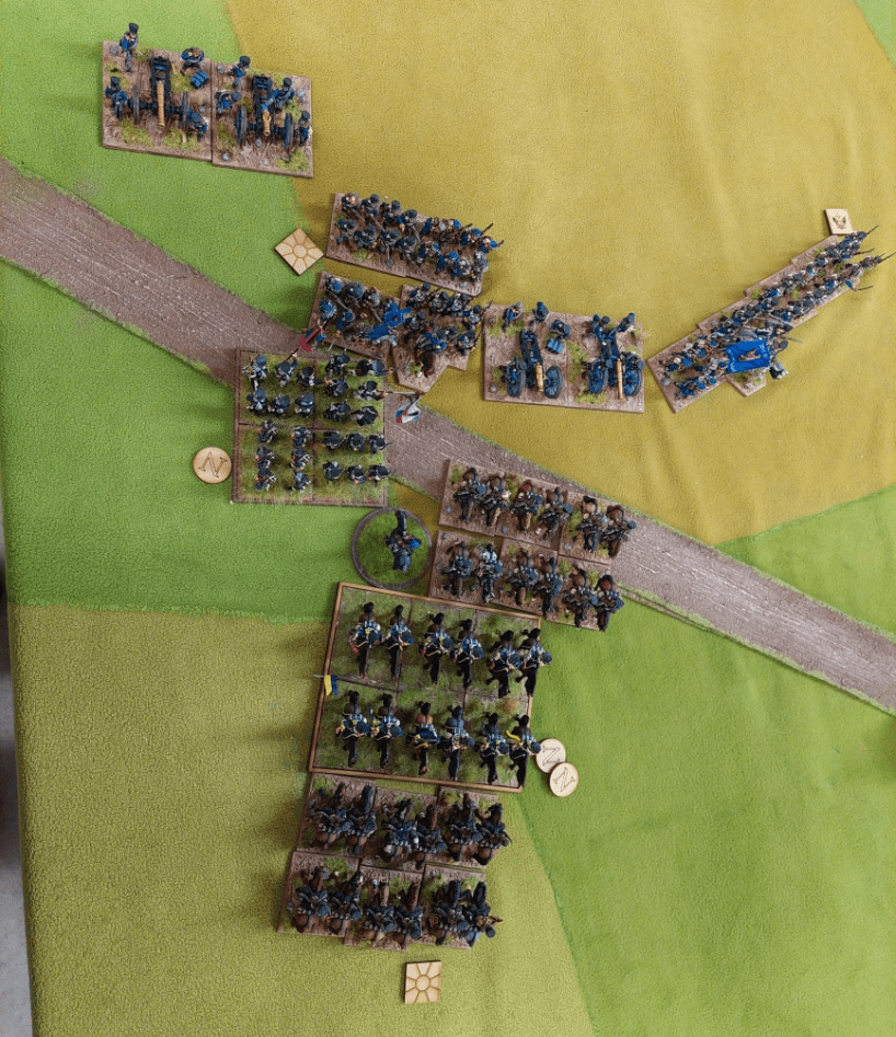 Facing the advancing brigade is my left brigade……. the small one but was still able to deliver lots of firepower.