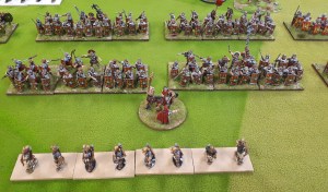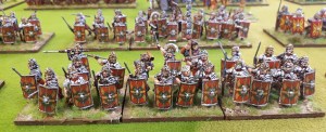 The Emperors Command group is quite large and strong, 2 Units of veteran Legionnaires, 1 unit Praetorians, 1 unit Cataphracts, 2 units Auxila, 1 unit Scorpios and 2 small units of archers. Not decided exactly how to base my skirmishers…working on it.