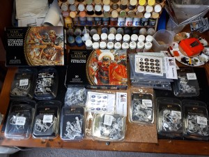 Close up of what will be coming off the production line. There’s 4 command packs of Generals to go on command bases. A unit of metal Auxilia cavalry, the Balaeric slingers(2 small units), a battery of 3 Scorpios , an Onager, a unit of Auxilia infantry and a unit of Veteran legionnaires. After these will add some more Cavalry. All purchased either on Warlord deals or sale at local Online Retailer, Mighty Ape.