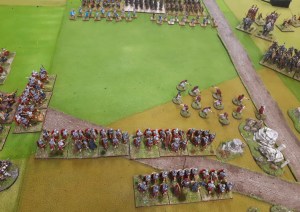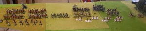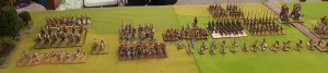 With the demise of WAB, the figures languished in boxes. Then Hail Caesar was released….and as I kind of understand Black Powder…it was an easy rule transition to make. I find am getting old(some would say grumpy, at times a justified comment!) and limited ability to learn new rule sets so Terry was a happy man.