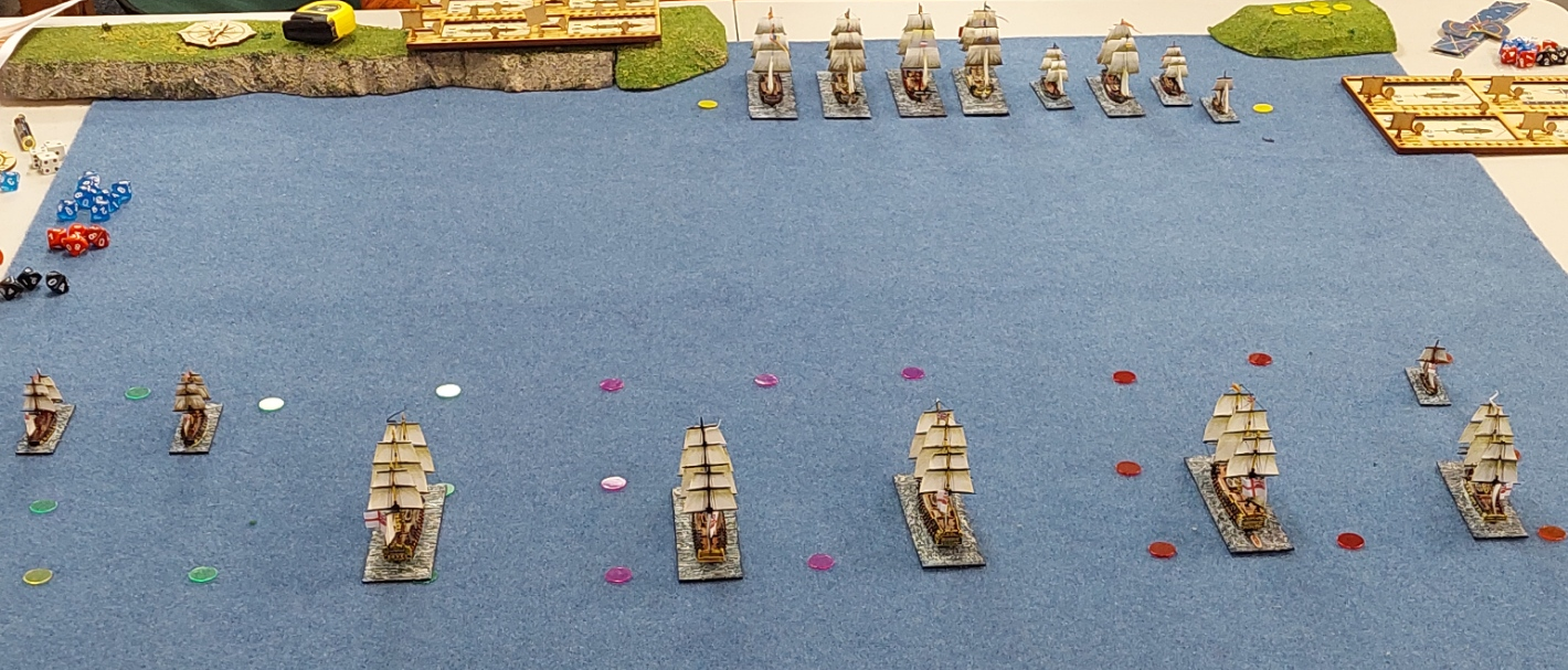 So scenario is a Franco/Spanish squadron is blockaded in a port and a British squadron is anchored off it on blockade duty. The F/S force is sailing out and needs to break through the British to escape.