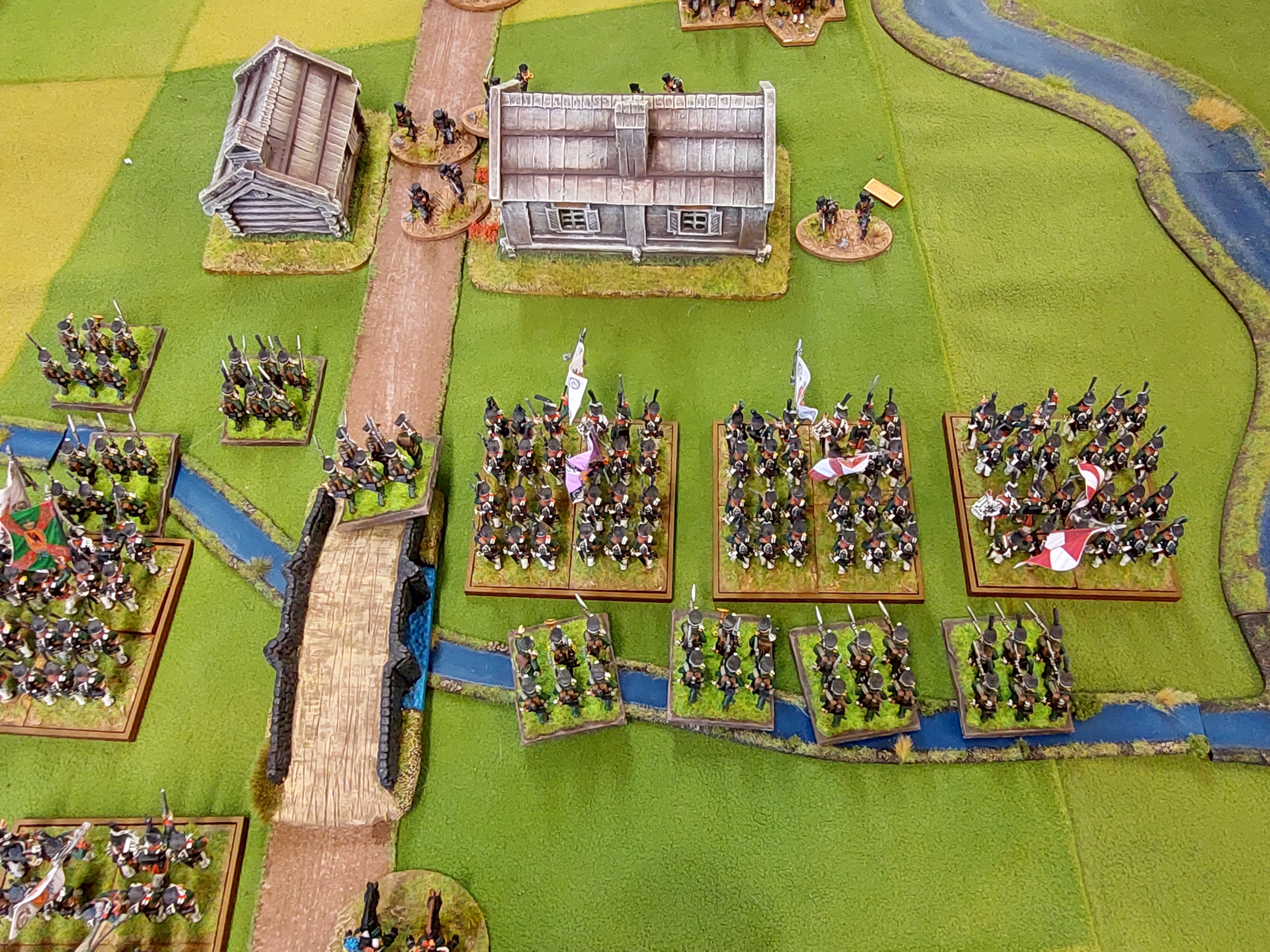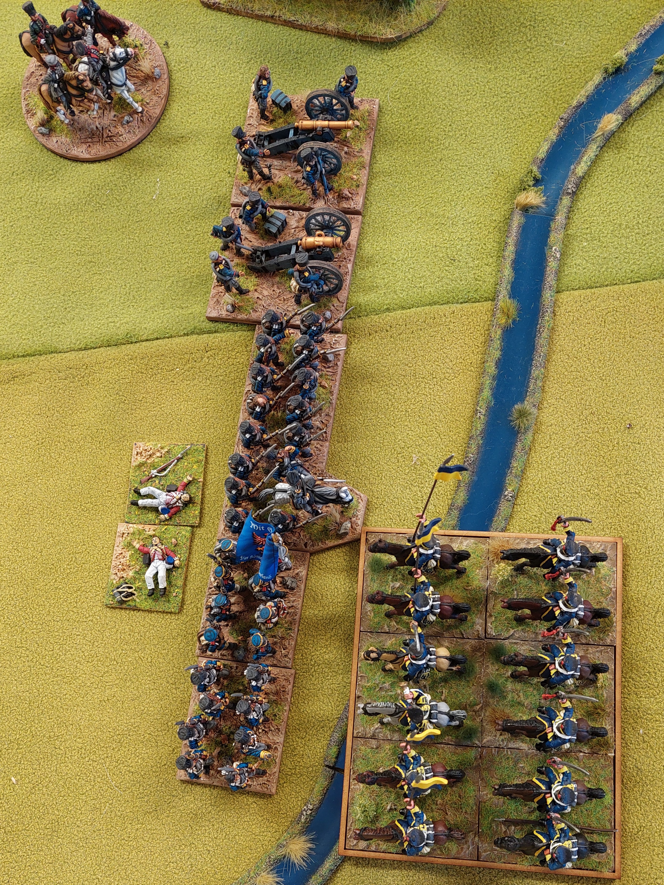 Murrays next turn catches my damaged Hussars and they pop, but he is shaken and retires…but ends up in front of a battery and I have troops in the wood who joined in shooting the Leib Hussars. Result..no more Leib Hussars.