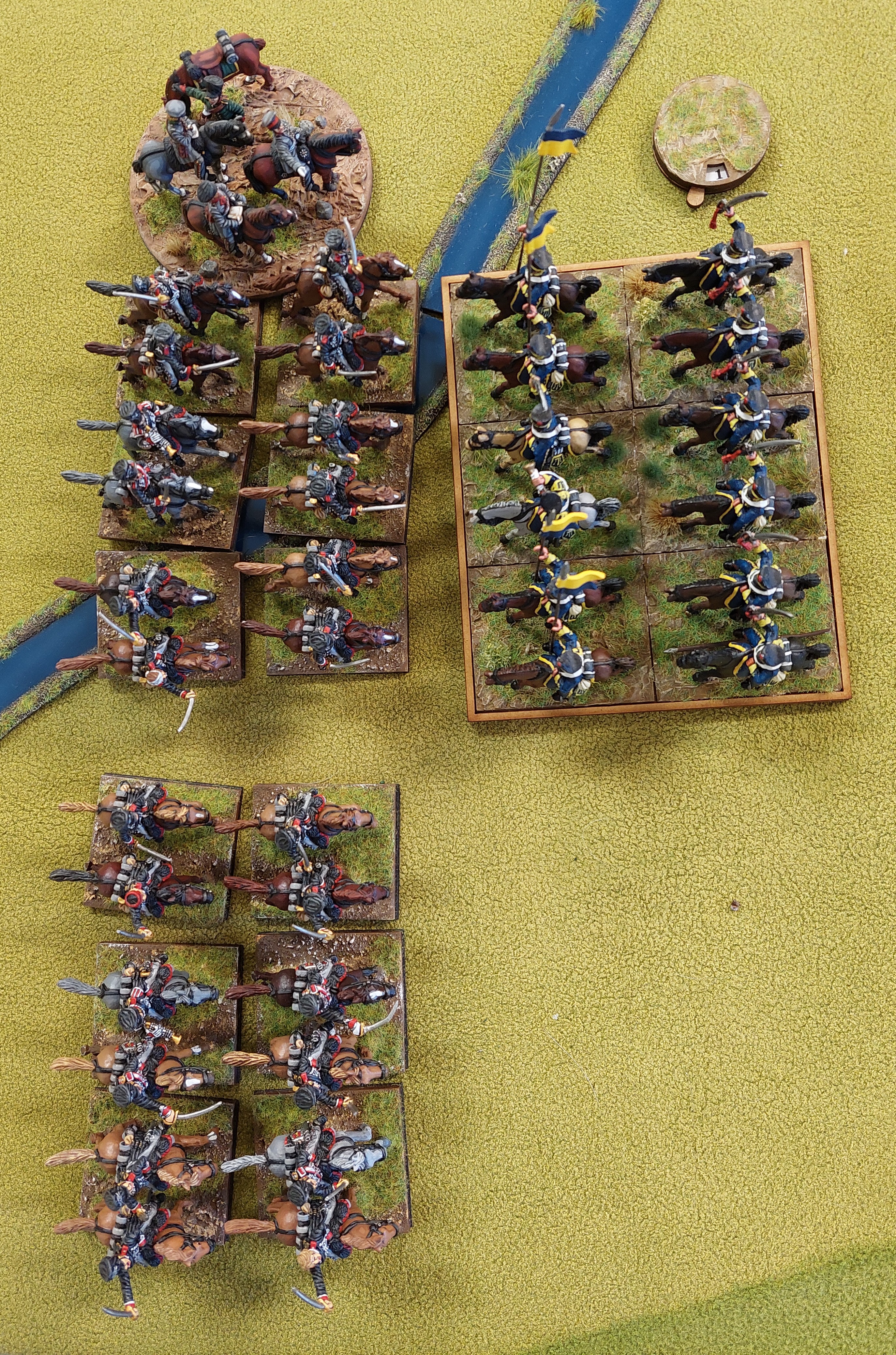 So next turn Murray charges me with his 2 units of Leib Hussars. I destroy the attacking unit but am shaken so I retire.