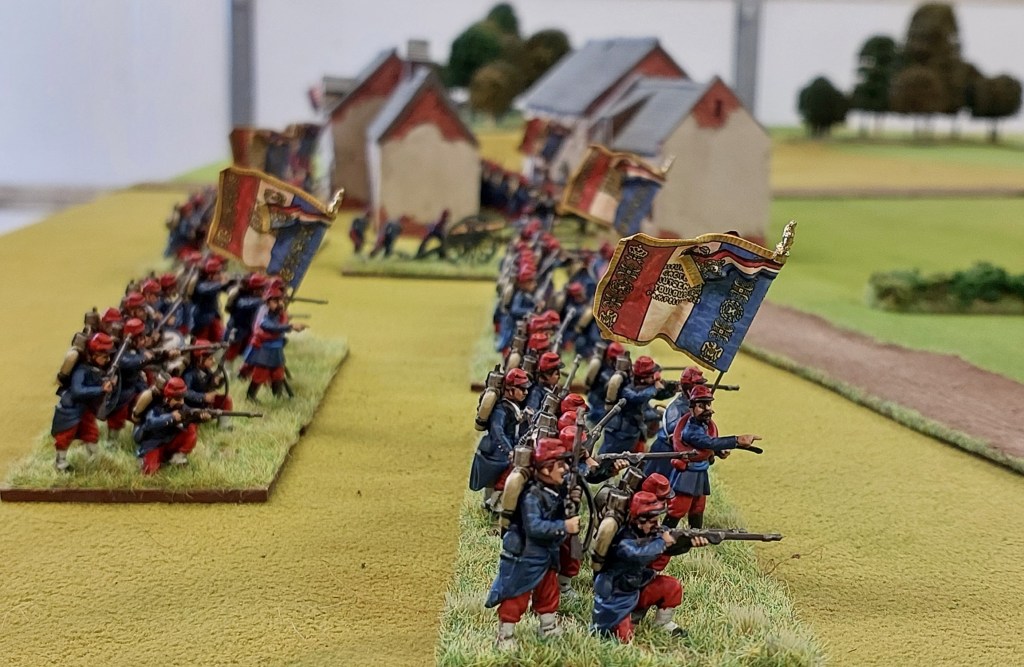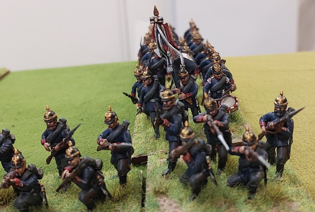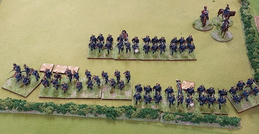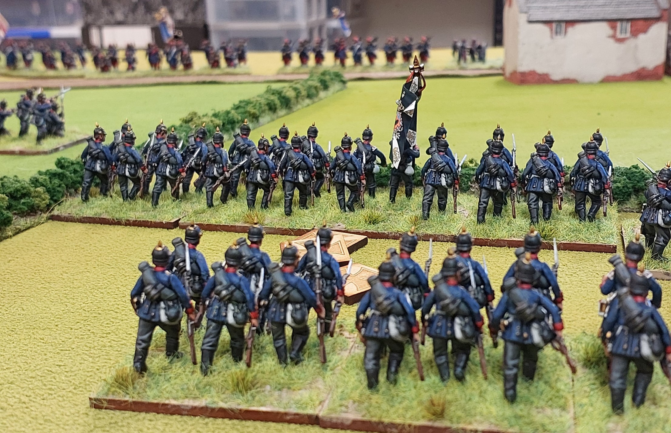 The French Cavalry is destroyed and the Uhlans sweep into the flank of a line bttn. Goldie’s flanking force is pouring in behind them.