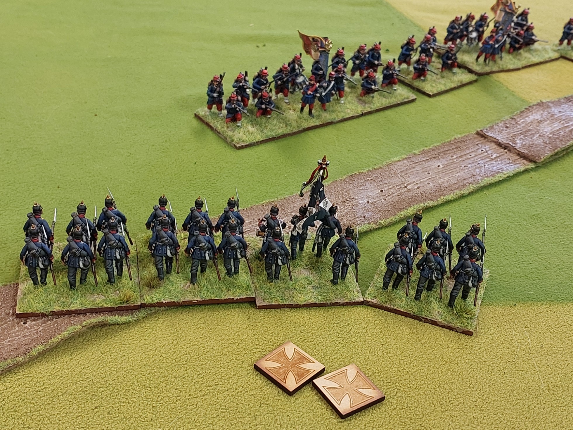 And for a first……French Cuirassiers made a charge against disordered infantry…WON THE COMBAT…..but the Prussians passed morale and the Cuirassiers retired…a pivotal point…..had the Prussians popped…a lot of Prussian units were within 6 inches and would have been facing morale tests.