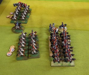 So next turn Murray charges me with his 2 units of Leib Hussars. I destroy the attacking unit but am shaken so I retire.