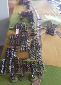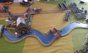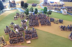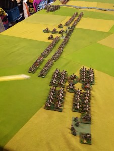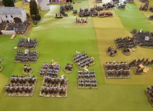 Keith has gotten very gung ho – he charged my right side brigade! I managed disorder one with closing fire..from RUSSIANS!
