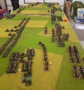 End of game which on scenario rules was a draw with 1 broken brigade each. My left hand brigade had still not moved all day. The right hand brigade was still intact but bit battle weary. The Jagers had suffered 1 lost unit but were free to move up on the light cavalry who couldn’t hurt them as no firepower or infantry.
