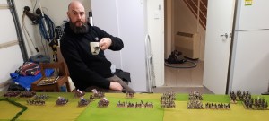 Keith chose to set up on the table side securing flanks on a hedged farm and a wood.