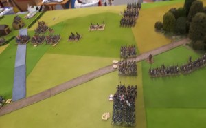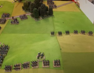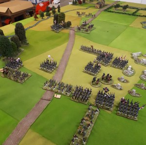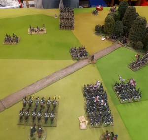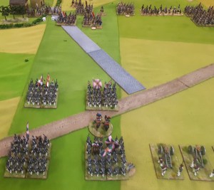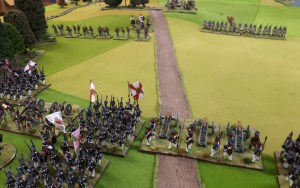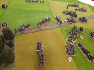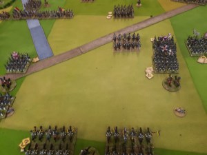 I ordered the left hand brigade to charge the French columns….one was disordered and had casualties so good odds beat it. Naturally they didn’t move…the whole game.
