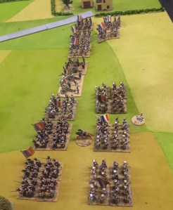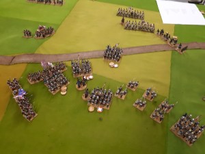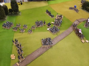 End of game which on scenario rules was a draw with 1 broken brigade each. My left hand brigade had still not moved all day. The right hand brigade was still intact but bit battle weary. The Jagers had suffered 1 lost unit but were free to move up on the light cavalry who couldn’t hurt them as no firepower or infantry.