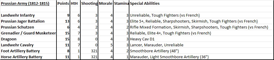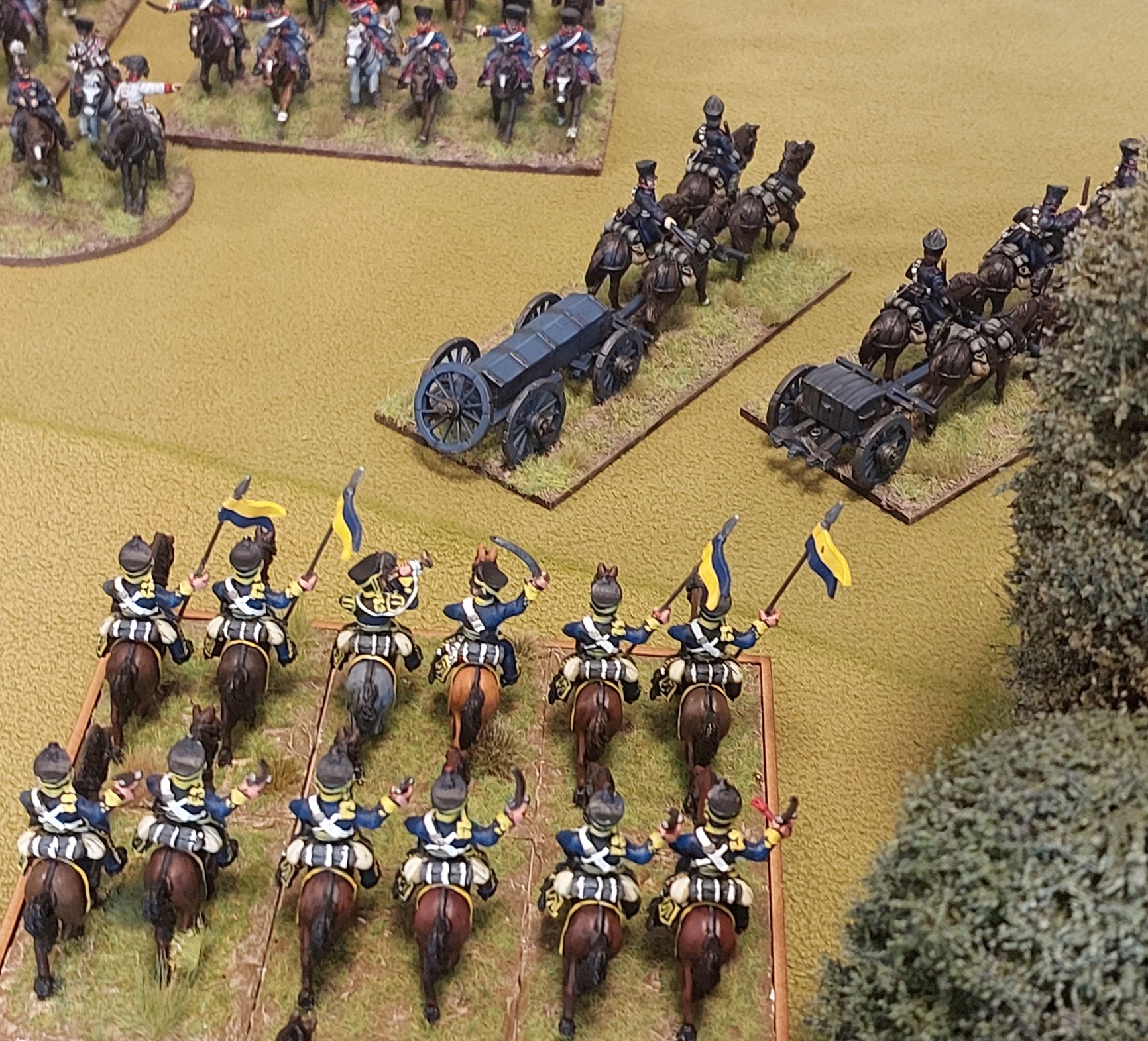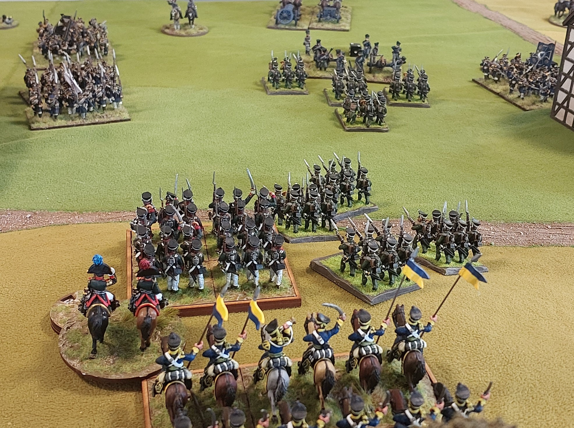 Goldies Prussians had a brigade of 2 Dragoons, a brigade of 2 landwehr cavalry, a brigade of 2 Grenadiers, a Jager, horse battery and Leib Hussars then a brigade of 6 landwehr. A foot battery was in there somewhere as well!