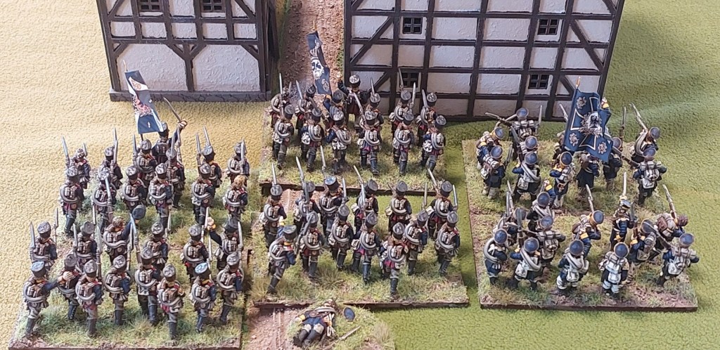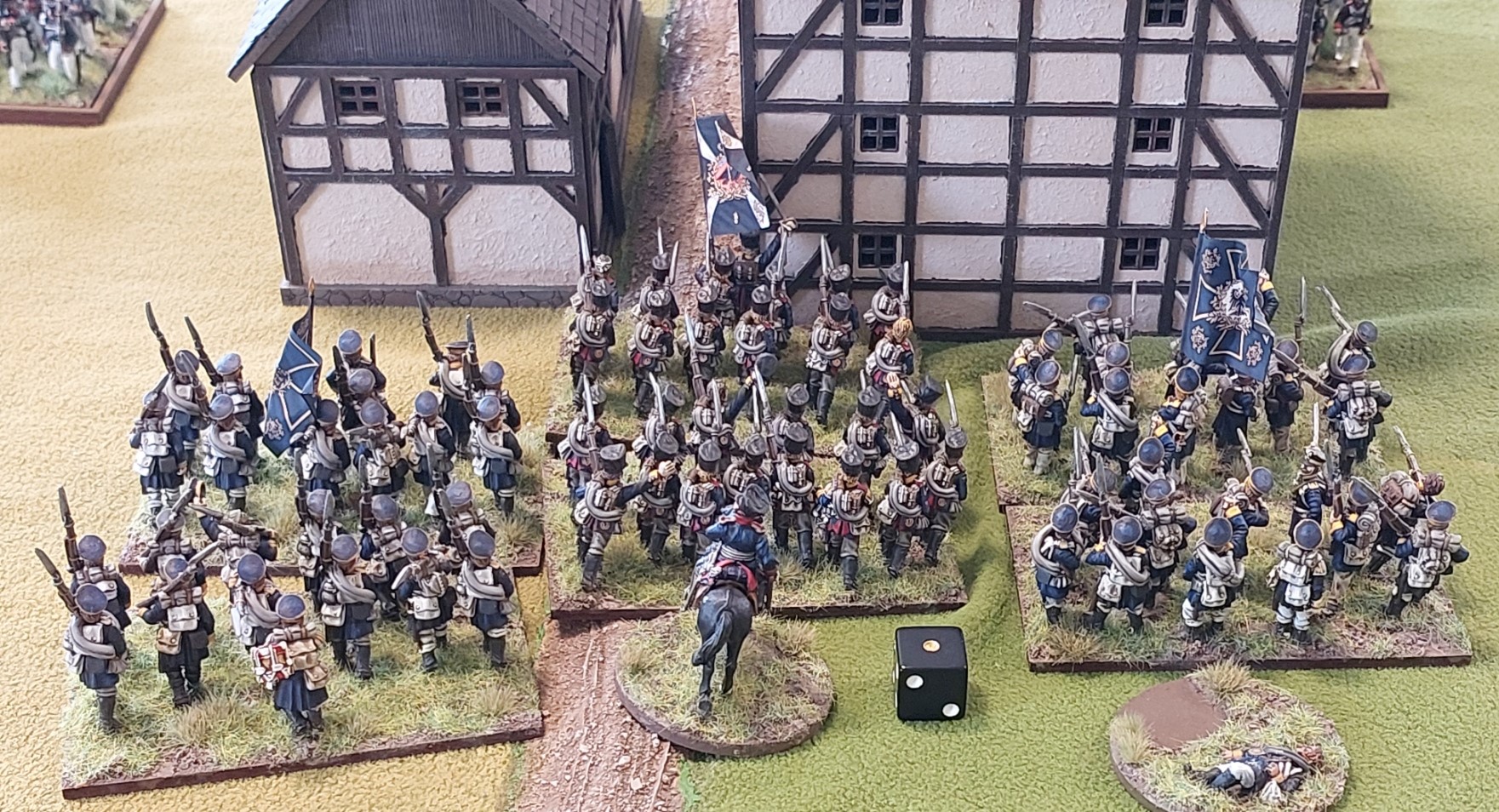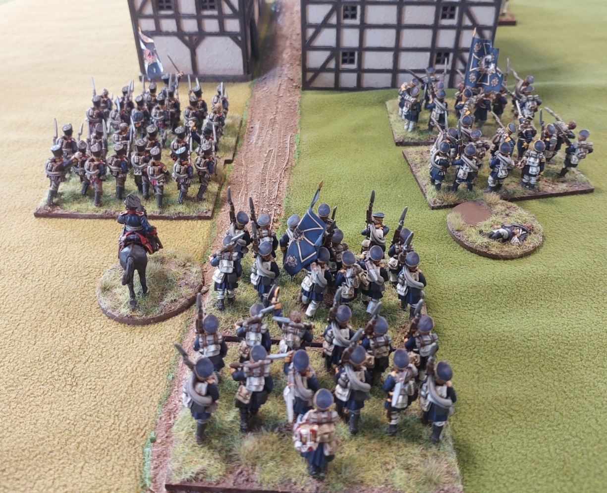Poor dice rolling by Goldie meant the attacking Grenadiers lost the continuing Village combat and were destroyed when failed the break test. The other units did not care.