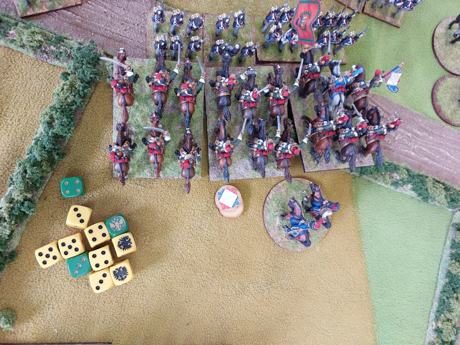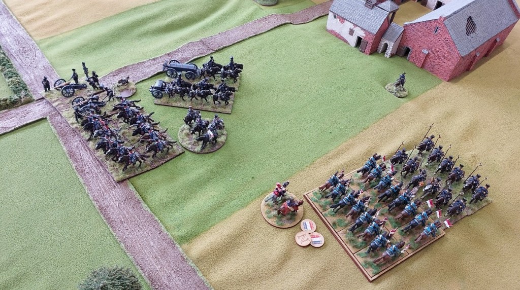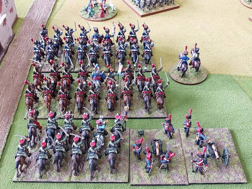 In my turn I managed to move my Dragoons and Hussars out of charge targeting by the French except for the Cossacks who declined to move. Idiots. Thankfully the French were a bit confused and didn’t manage to contact them.