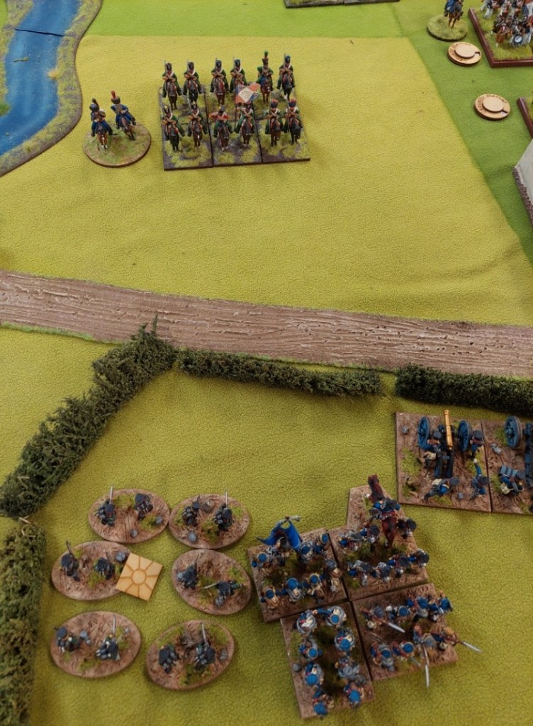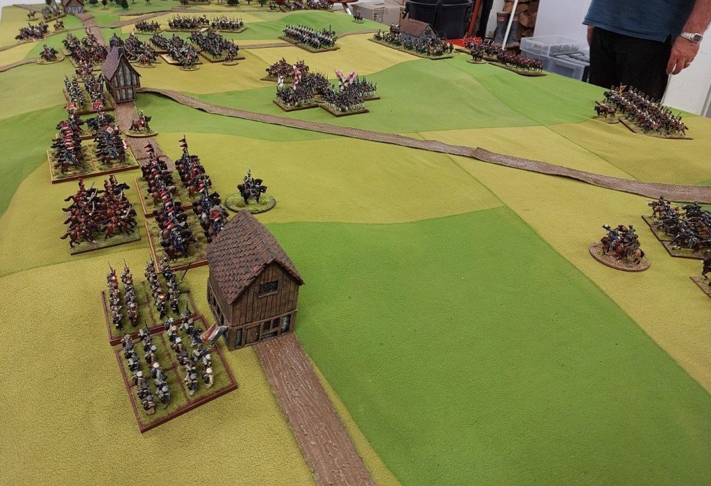 French Cuirassiers have been resting on table edge for some time….. they really did consider themselves a reserve! A field of juicy targets and they just sat and looked at them!!