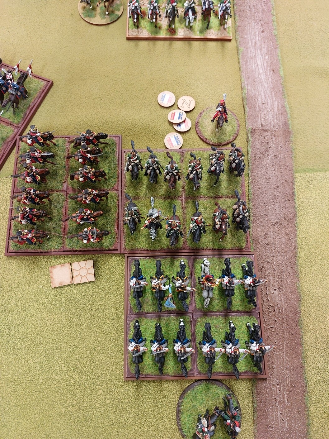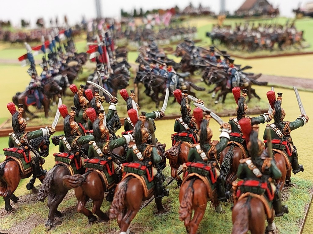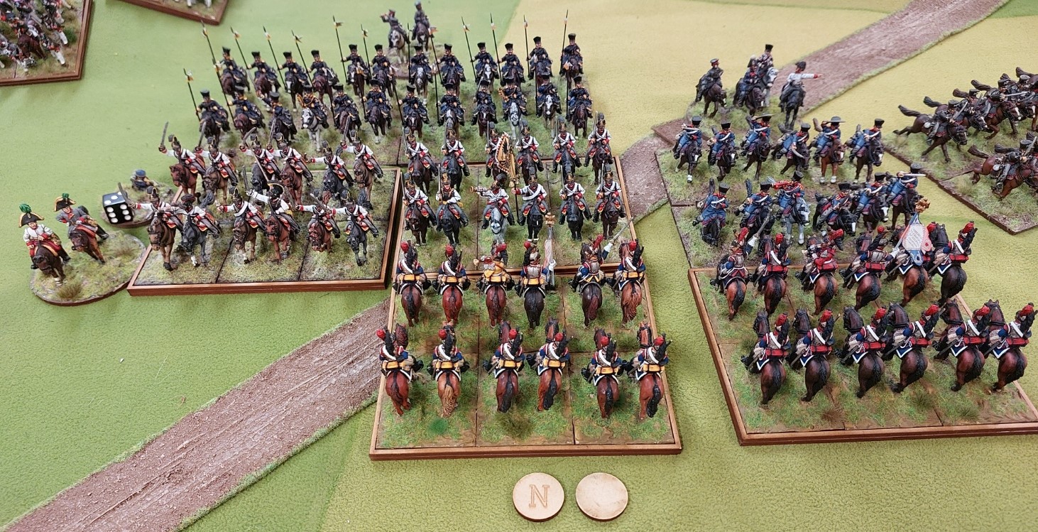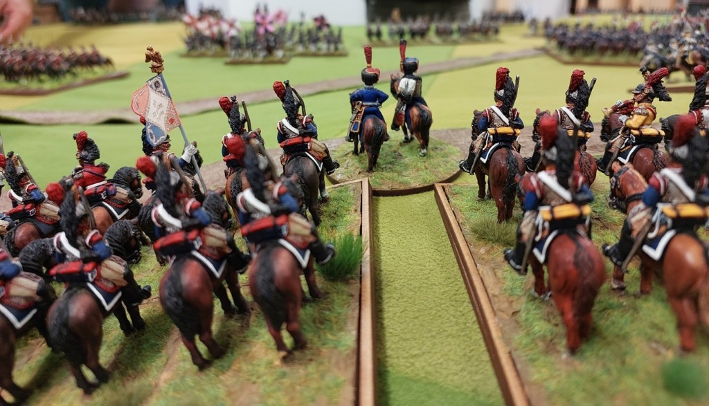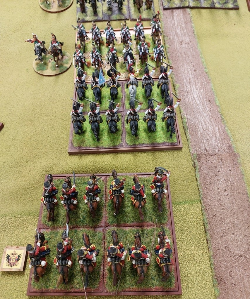 Oh look…..2 of my Cavalry regts have appeared…..these are my 4th and 6th French Cuirassier regts…..close to 20 years old now……Front Rankers…I tidied them up as were a bit battle weary and rebased them for this game.