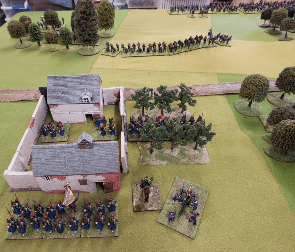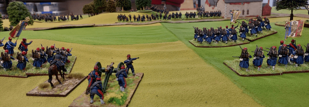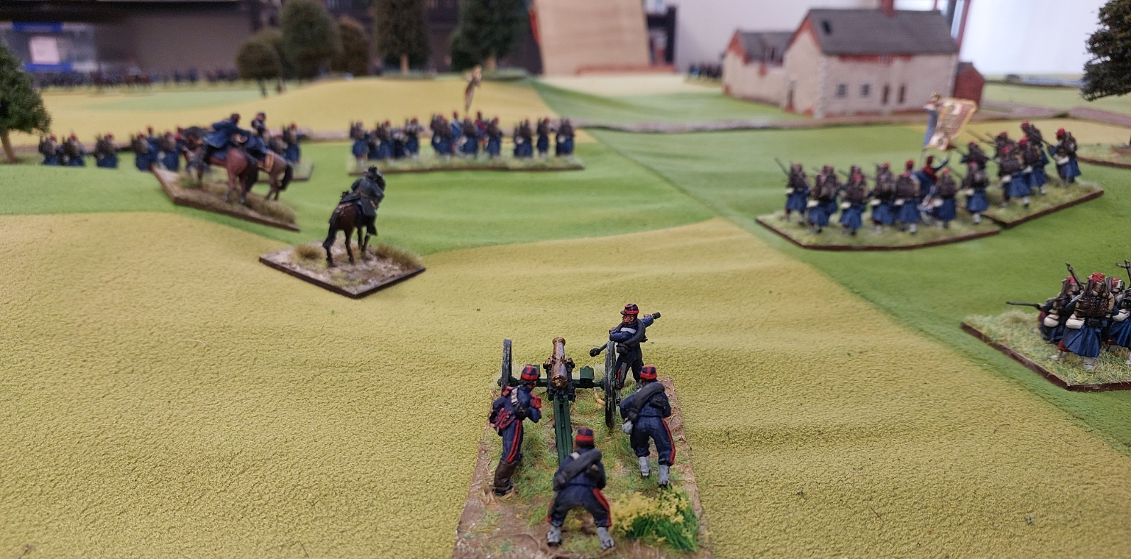 The 12pdr is destroyed… the the infantry charge eventually defeats the French line who retire…the Prussians then retire.