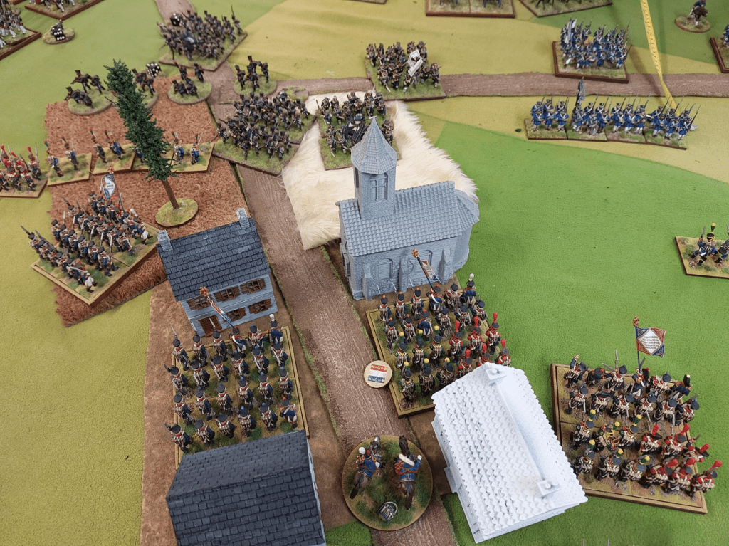 So that was that, a decisive French victory…in so far as we held Mockern. Robs Division was 1 unit away from collapse……but even then his units would not have to leave Mockern. French plan was to wait for Prussian advance then relocate units to the ridge beside Mockern…and it worked…so a good day at the office for Rob and I! Lots of what ifs…..maybe if Steinmetz had moved…..or Steve has managed to get his troops to move faster…or……and that is the fun of playing these well balanced scenarios……